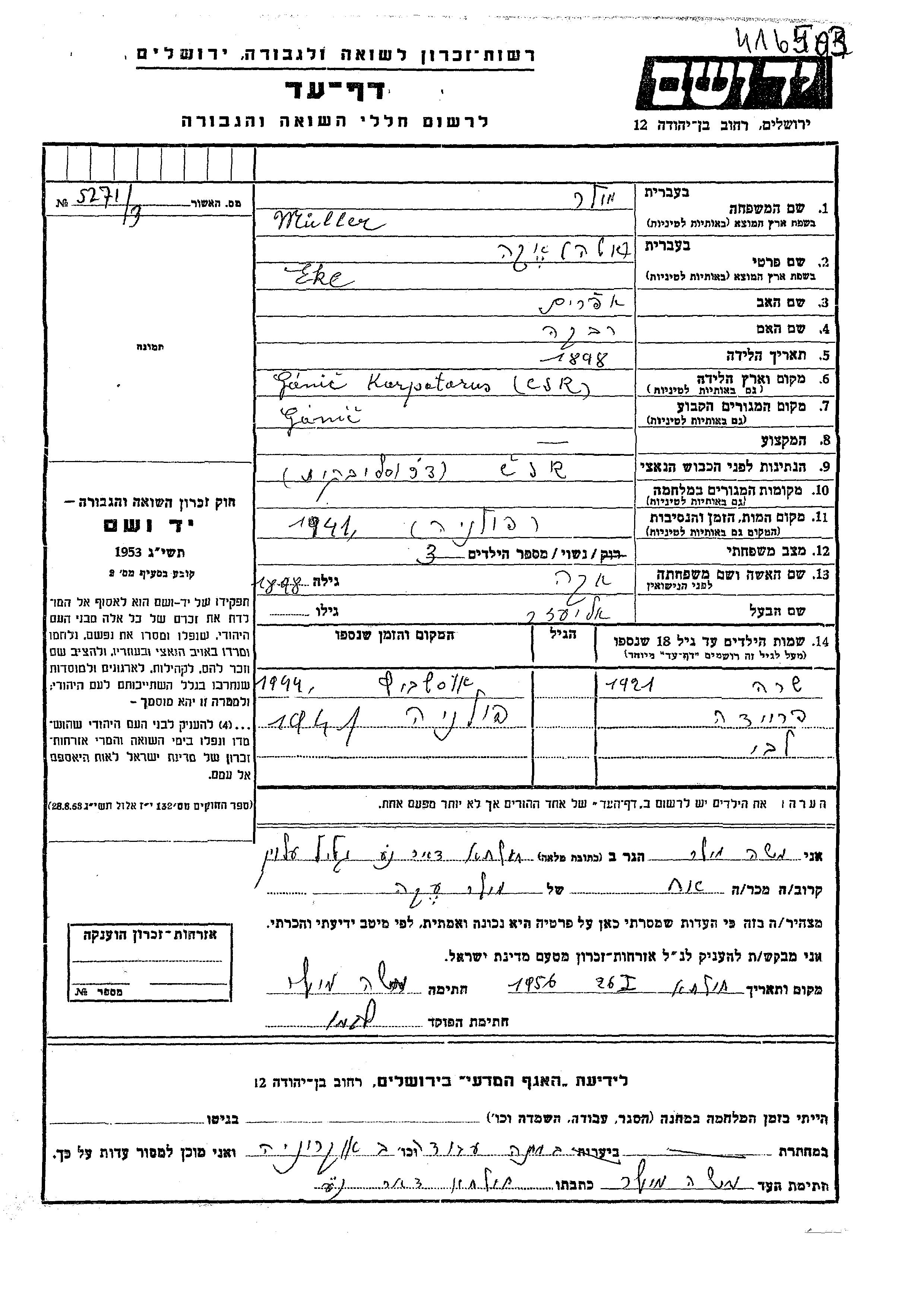 Yad Vashem - Gedenkblätter Sammlung