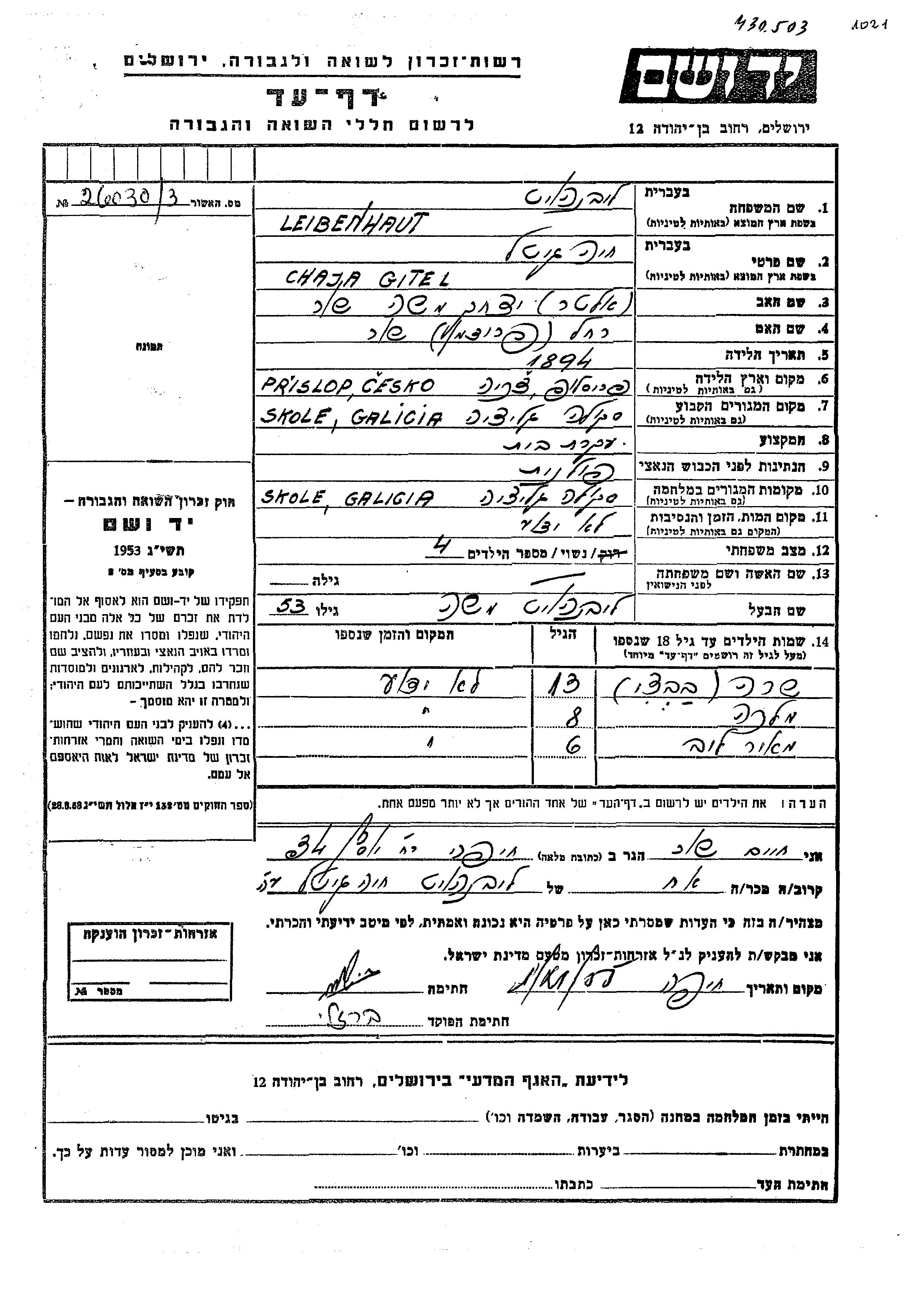 Leibenhaut Sara Babchi Skole, Polen Gedenkblatt
