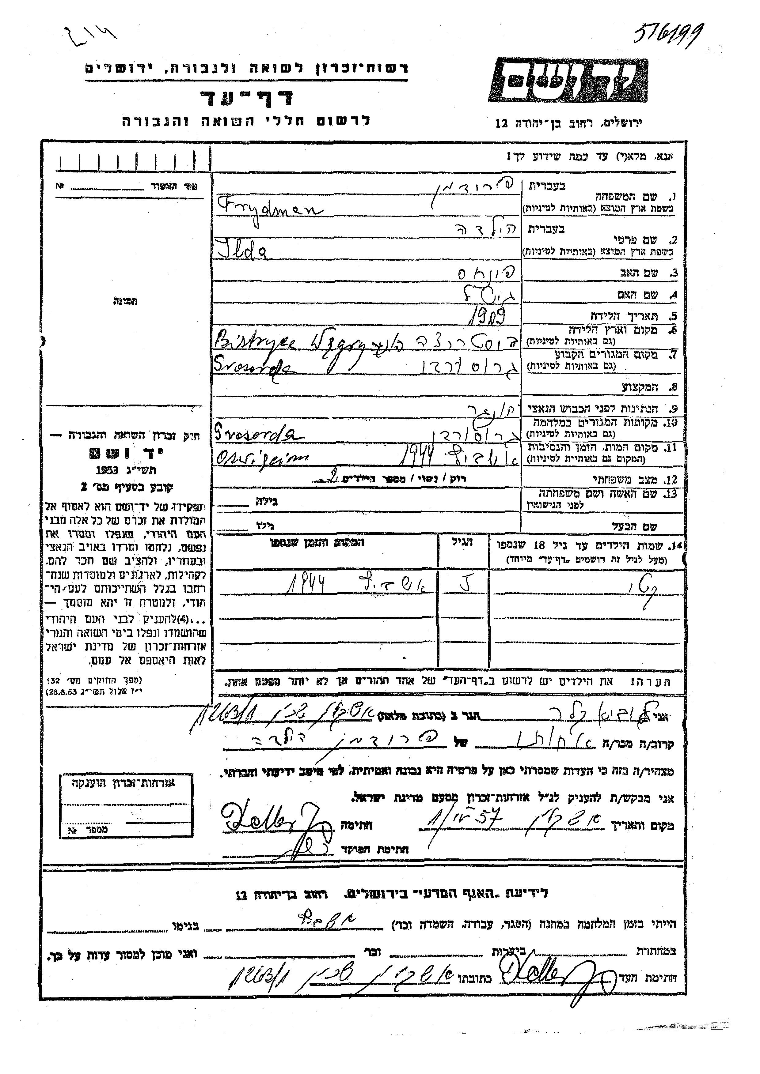 Frydman Kato Gross Wardein, Rumänien Gedenkblatt
