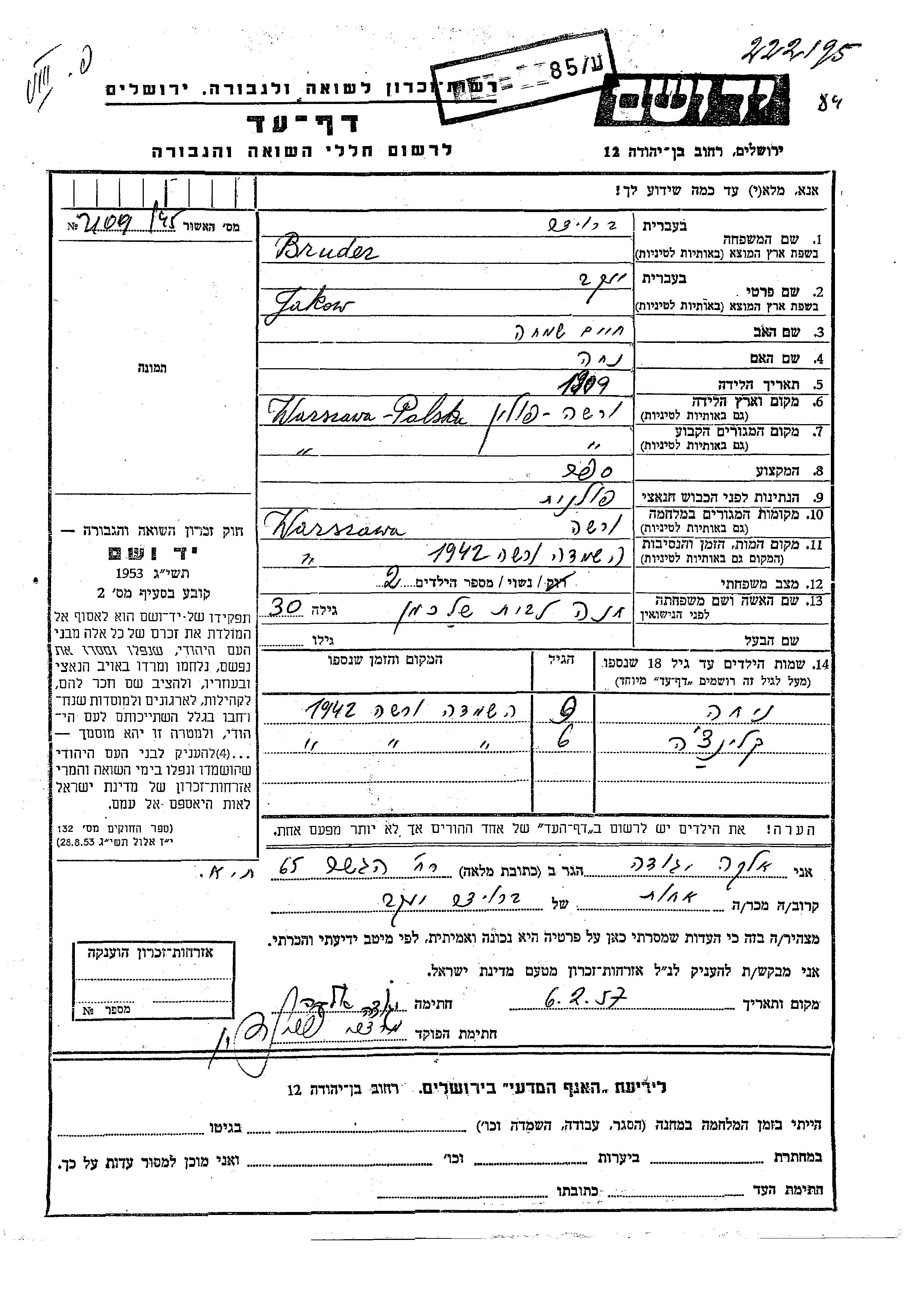 Halina Bruder Broder wurde Sie war die Tochter von Jakow und Khana, geb. Shlakhman. Sie war Kind. Vor dem Zweiten Weltkrieg lebte sie in Warszawa, Polen. Während des Krieges war sie in Warszawa, Polen.