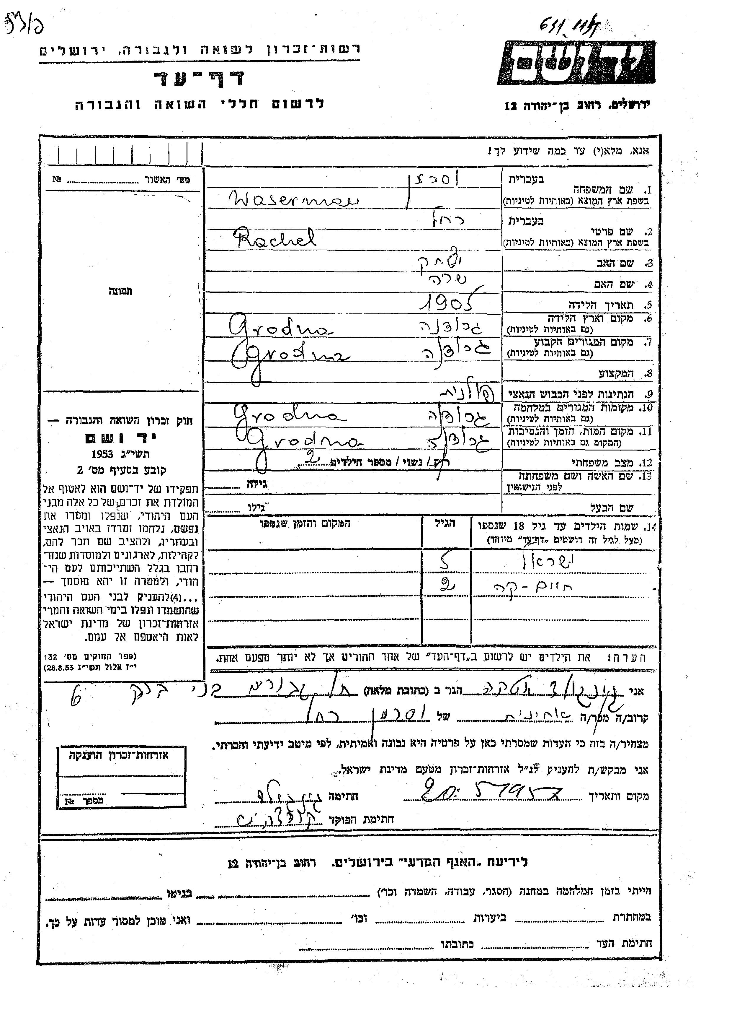 Waserman Yisrael Grodno, Polen Gedenkblatt
