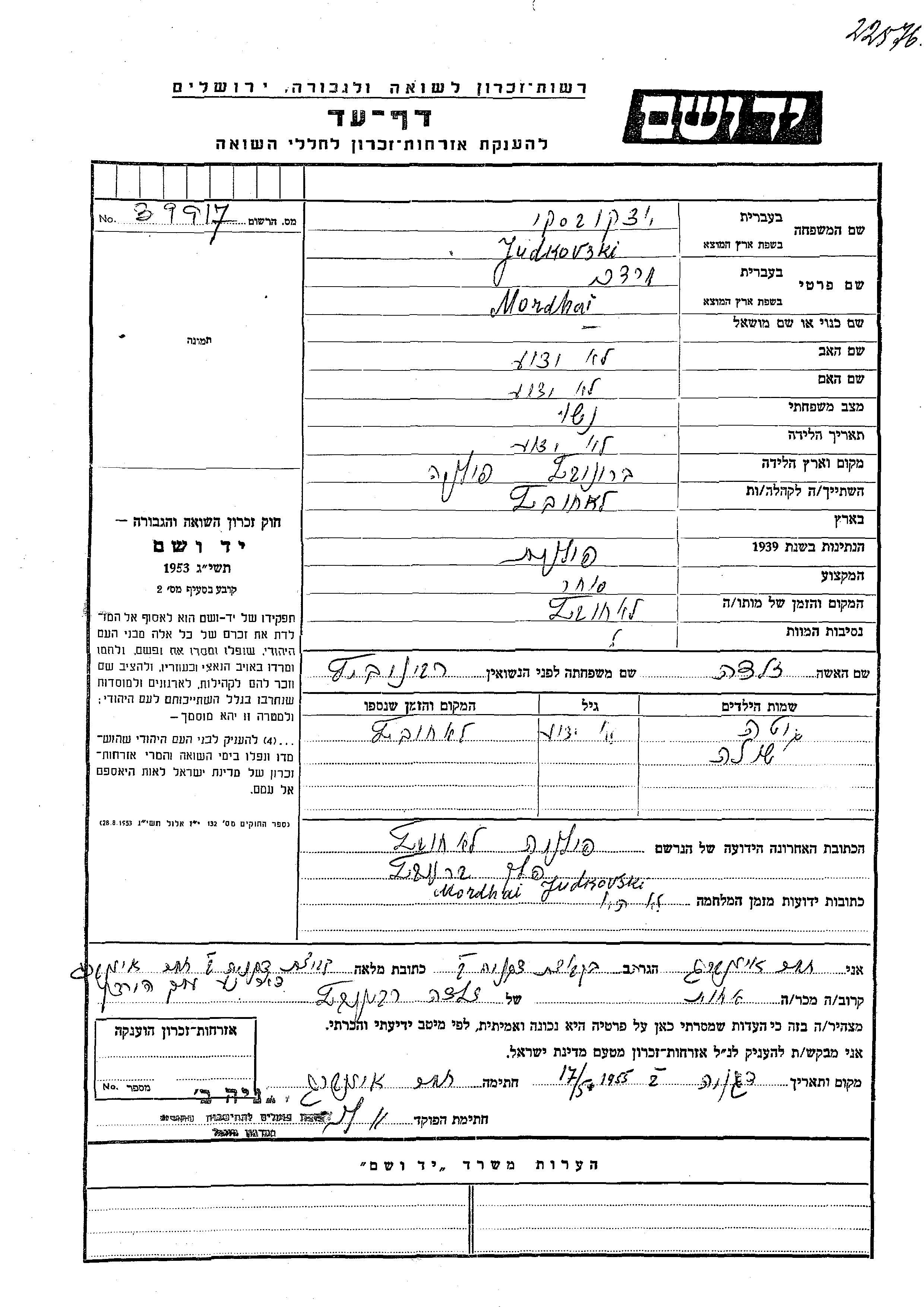 Yudkovski Gita Baranowicze, Polen Gedenkblatt
