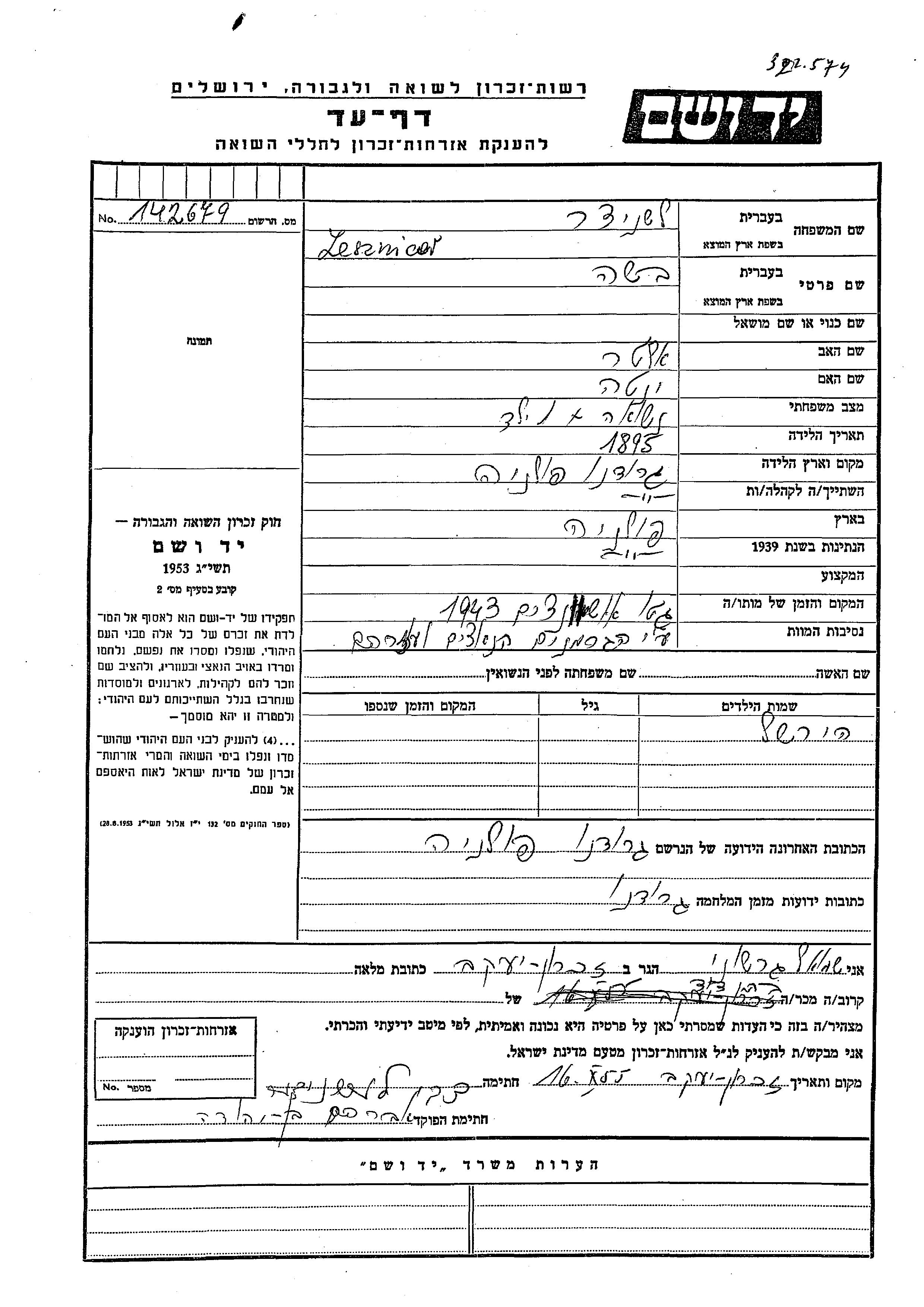 Lesznicar Hirshel Grodno, Polen Gedenkblatt