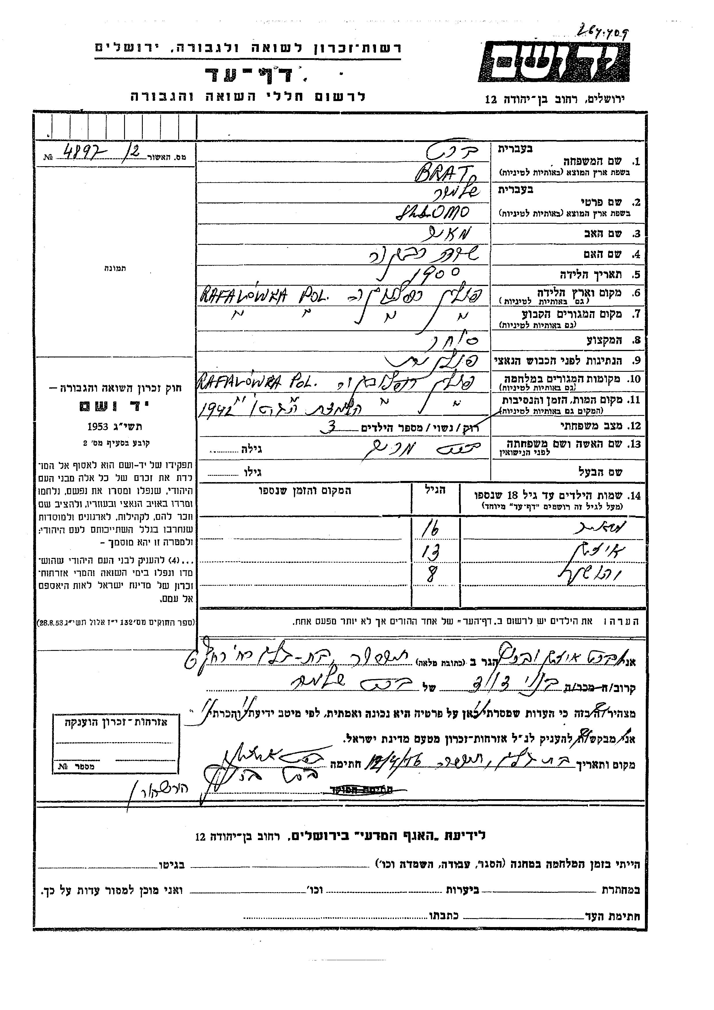 Brat Yehoshua Rafałówka, Polen Gedenkblatt