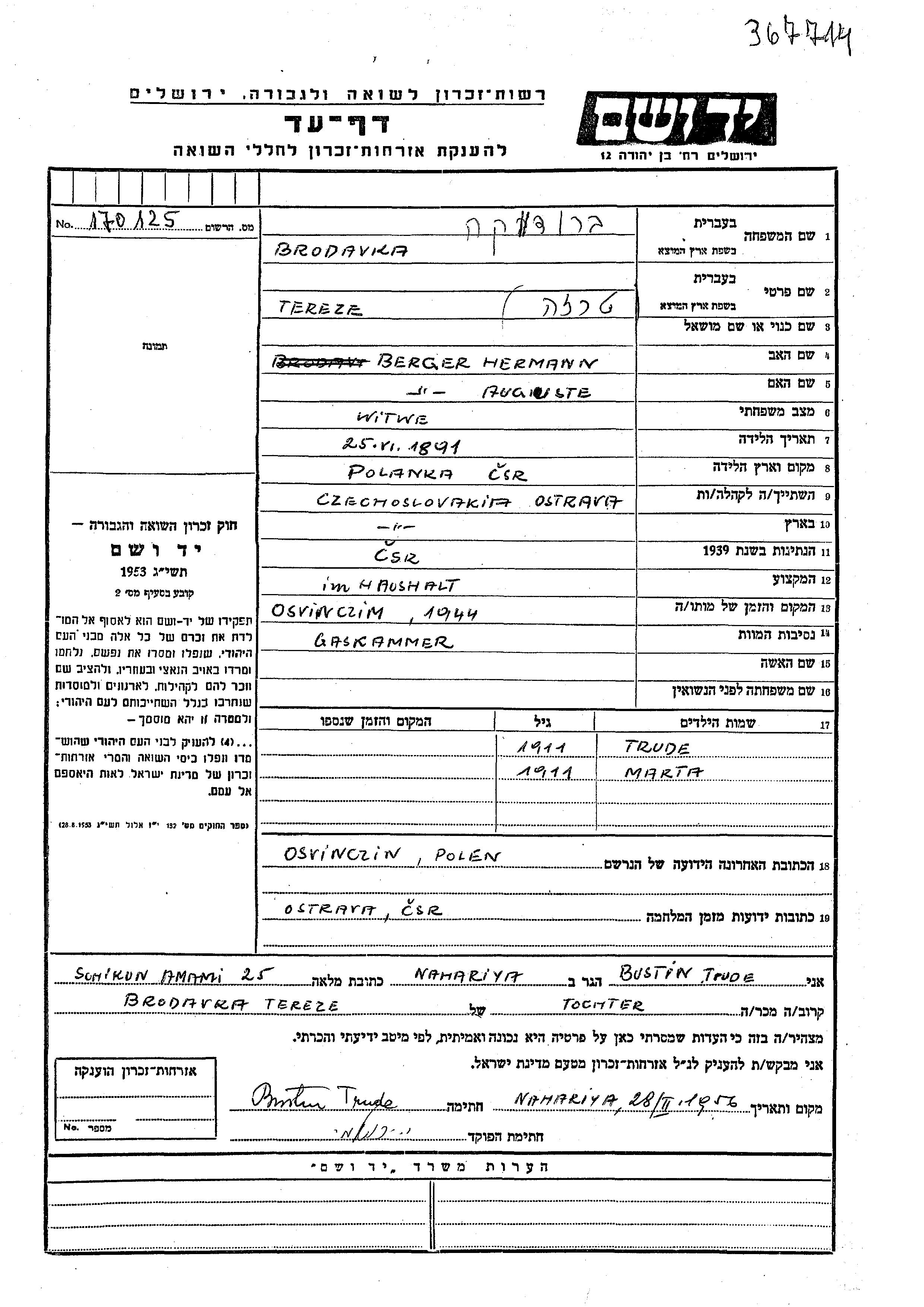Ständiger Wohnsitz vor dem Krieg: Stadt/Ortschaft oder Bezirk/Region oder Land