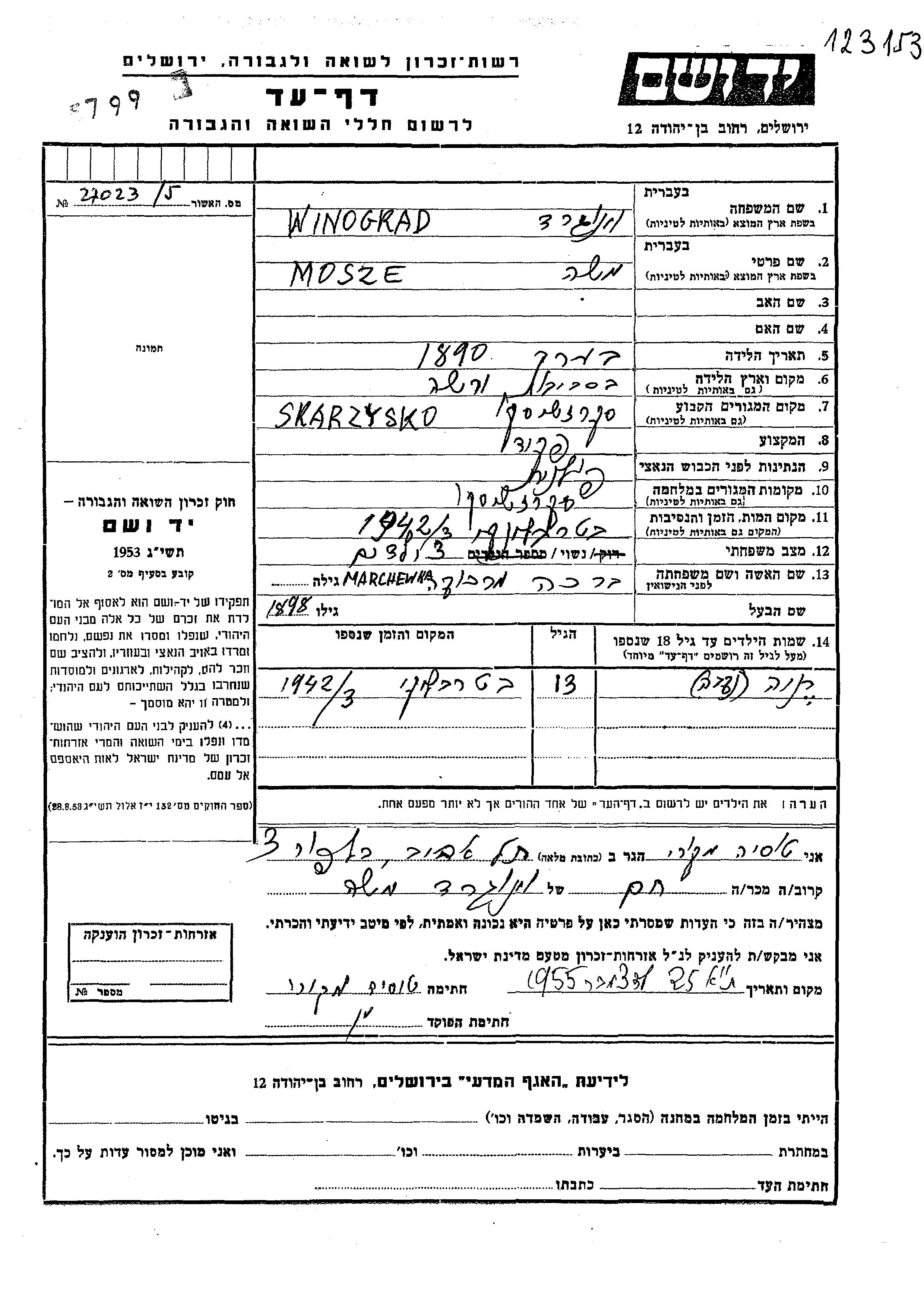 Renia Winograd wurde Sie war die Tochter von Mosze und Brakha, geb. Marchewka. Sie war Kind. Vor dem Zweiten Weltkrieg lebte sie in Skarzysko Kamienna, Polen. Während des Krieges war sie in Skarzysko Kamienna, Polen.