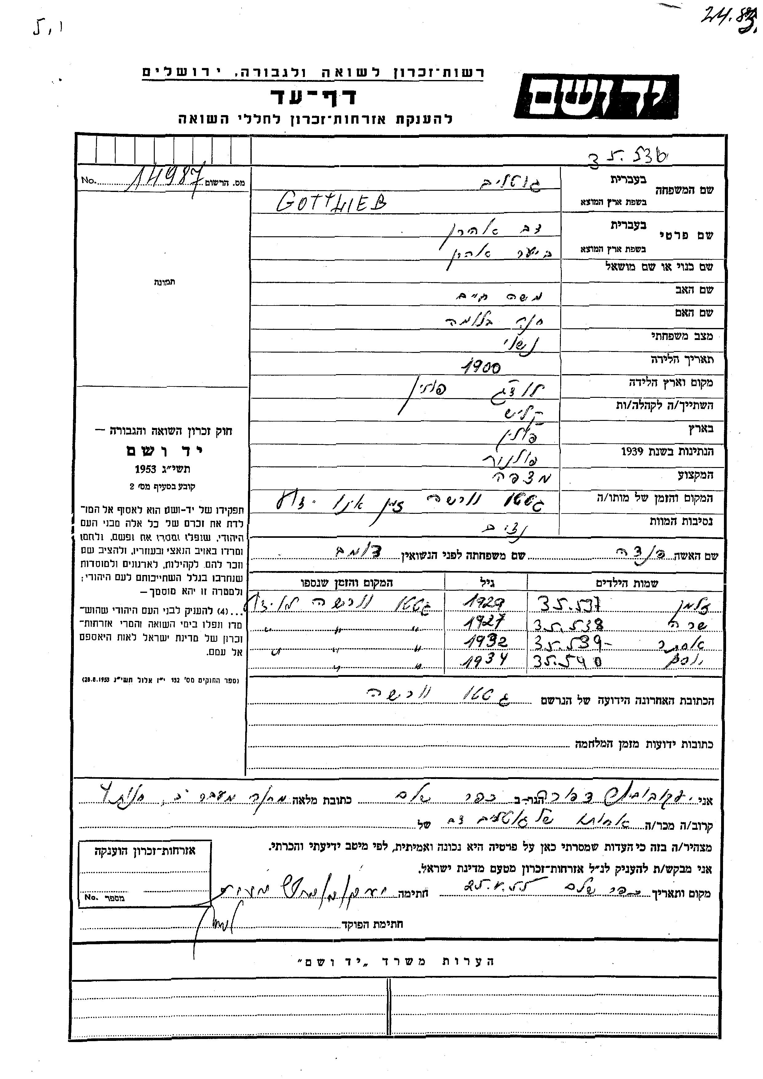 Yad Vashem - Gedenkblätter Sammlung