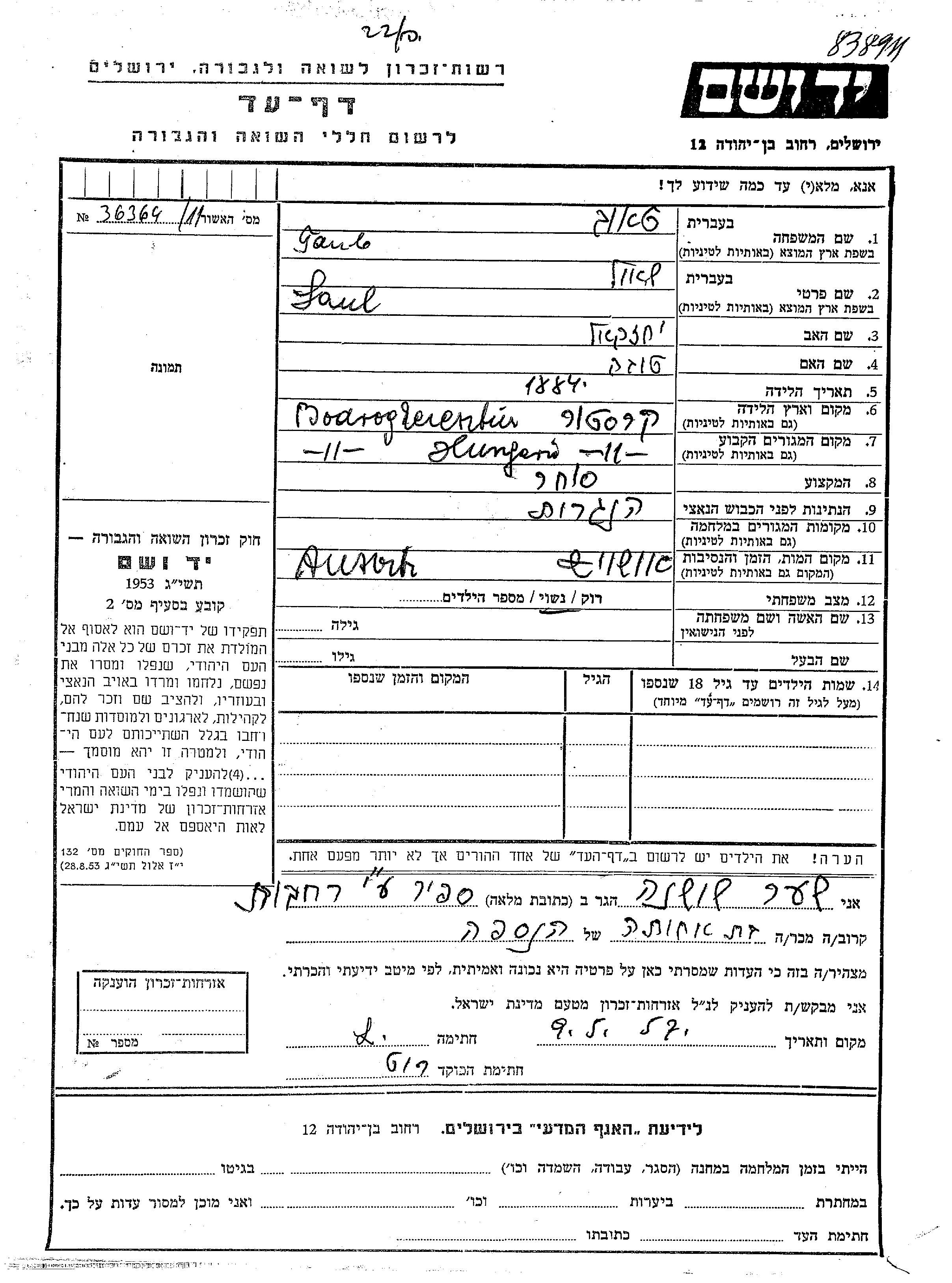 Shaul wurde in der Schoah ermordet. Todesort: Auschwitz, Polen.