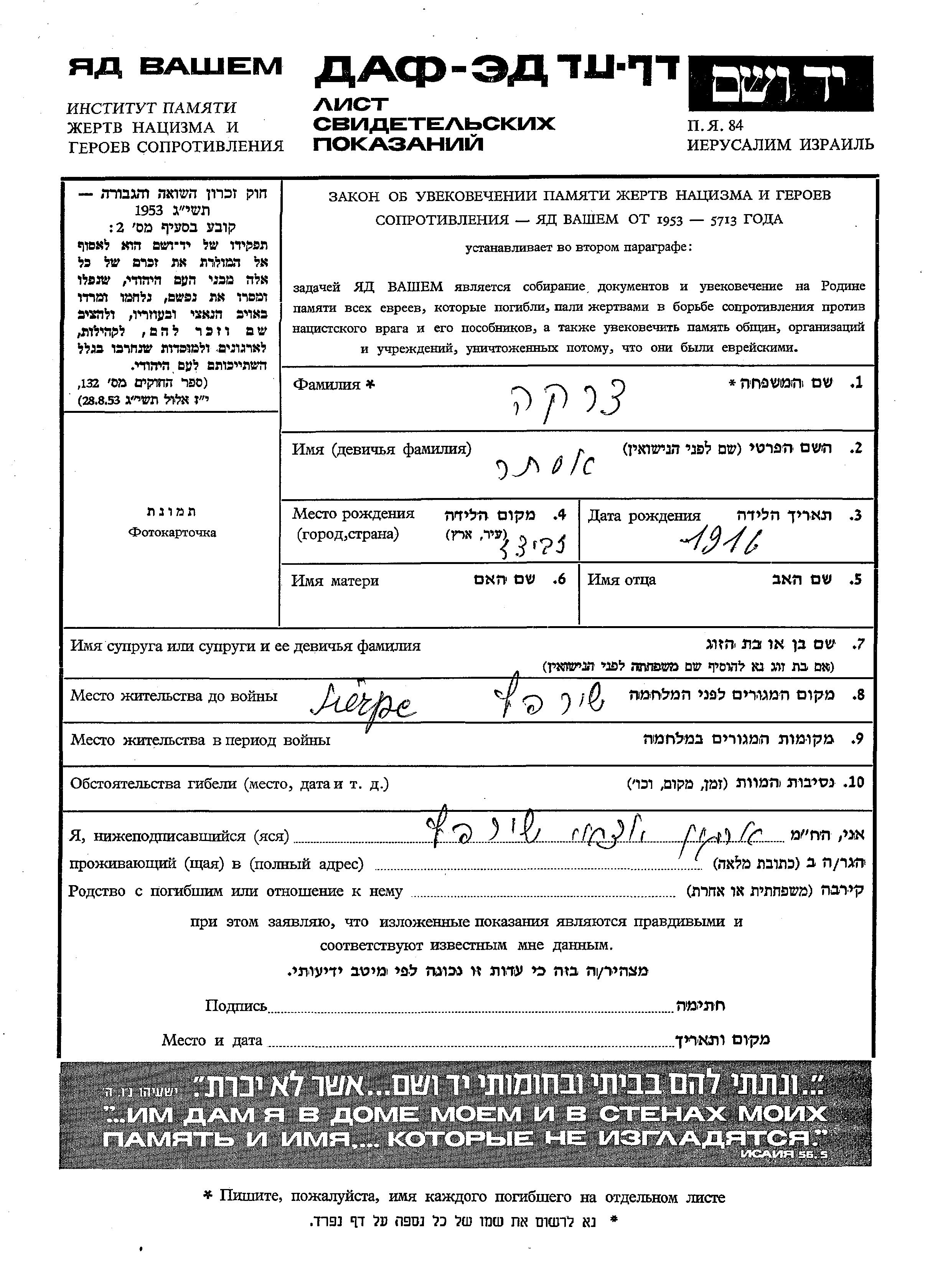 Ester Charka wurde im Jahr 1916 in Zawidz, Polen geboren. Vor dem Zweiten Weltkrieg lebte sie in Sierpc, Polen.