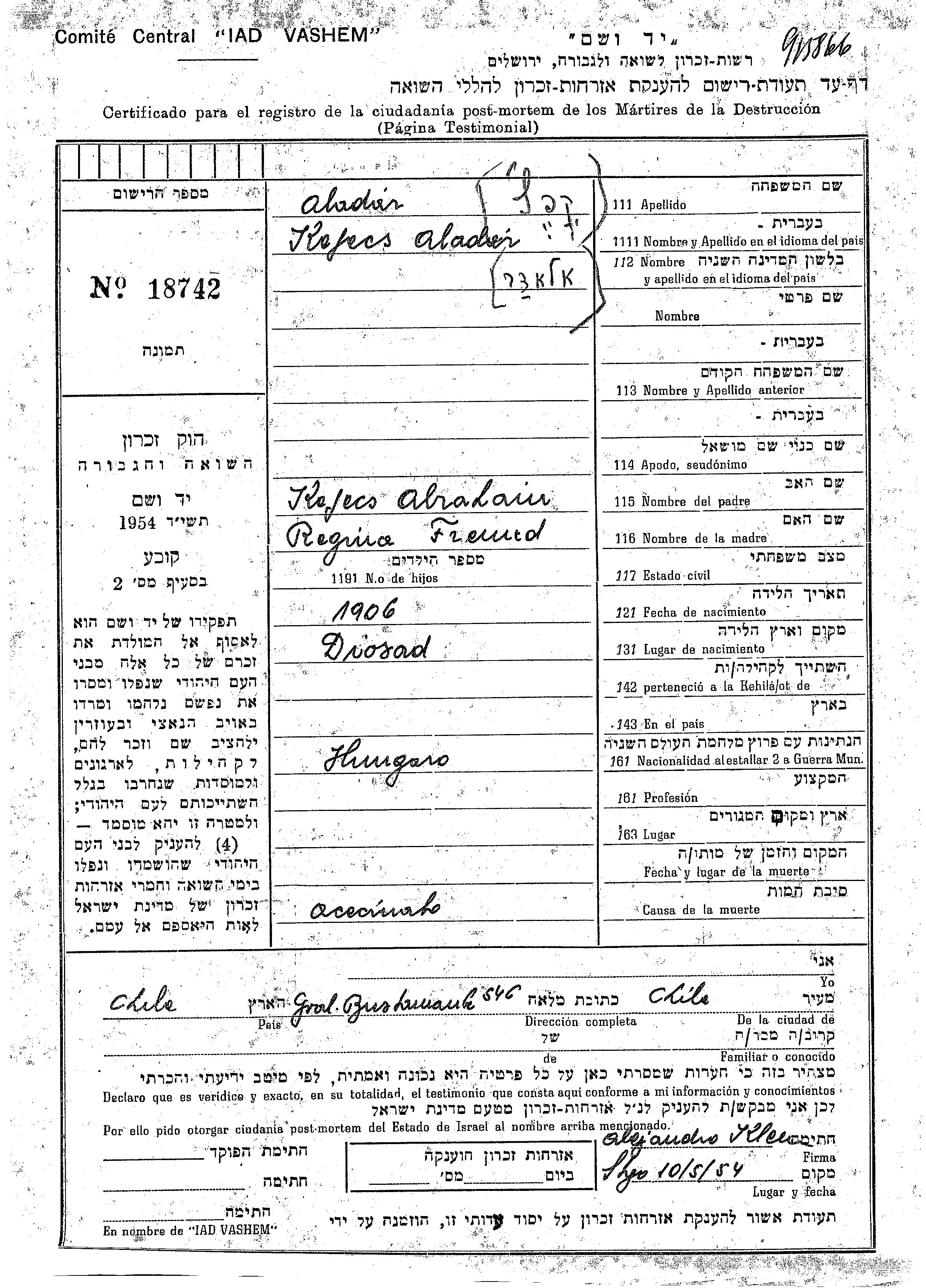 Aladar Kefecs wurde im Jahr 1906 in Diosd, Ungarn geboren. Er war der Sohn von Abraham und Regina. Vor dem Zweiten Weltkrieg lebte er in Diosd, Ungarn. Während des Krieges war er in Ungarn.