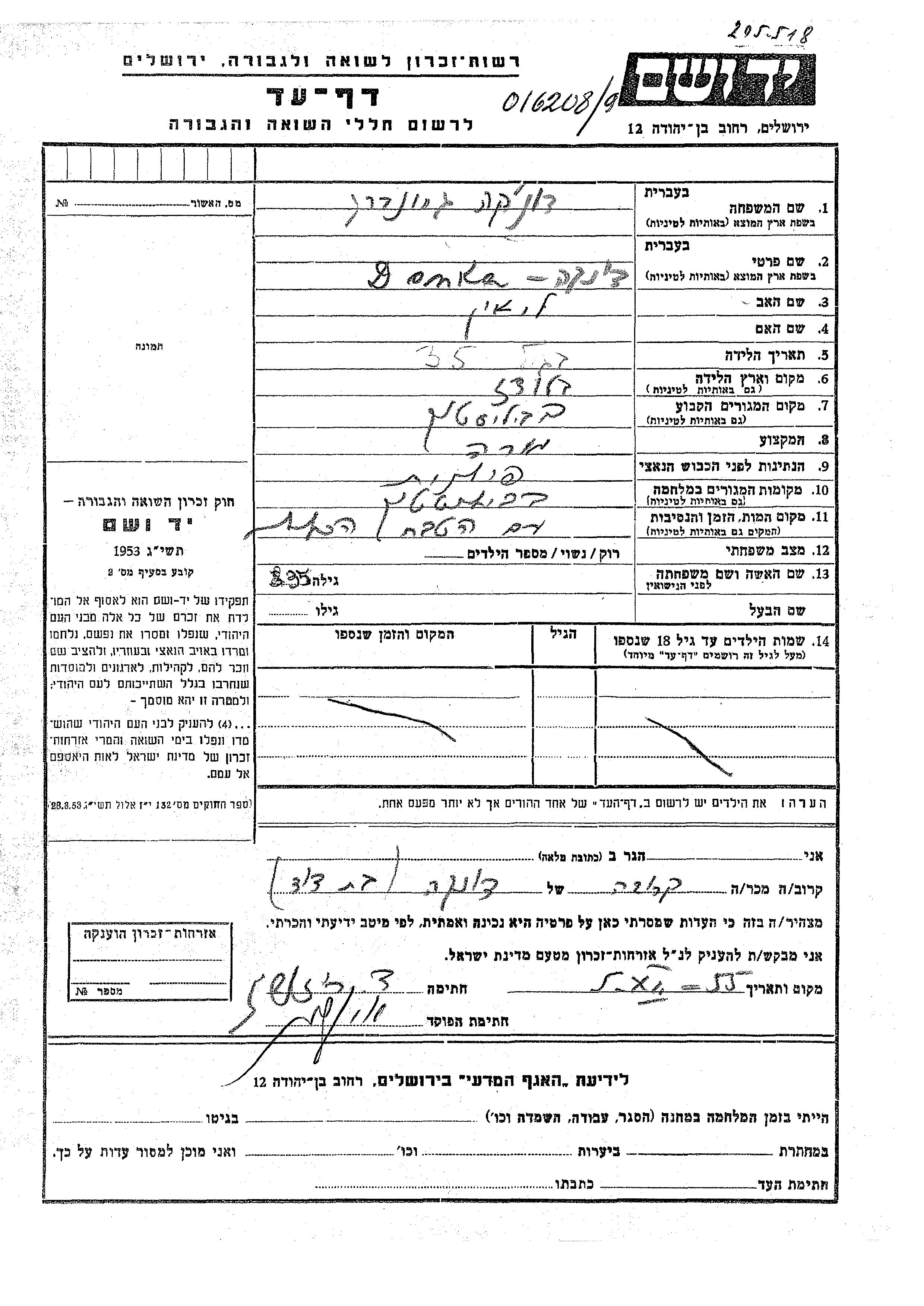 Yad Vashem - Gedenkblätter Sammlung
