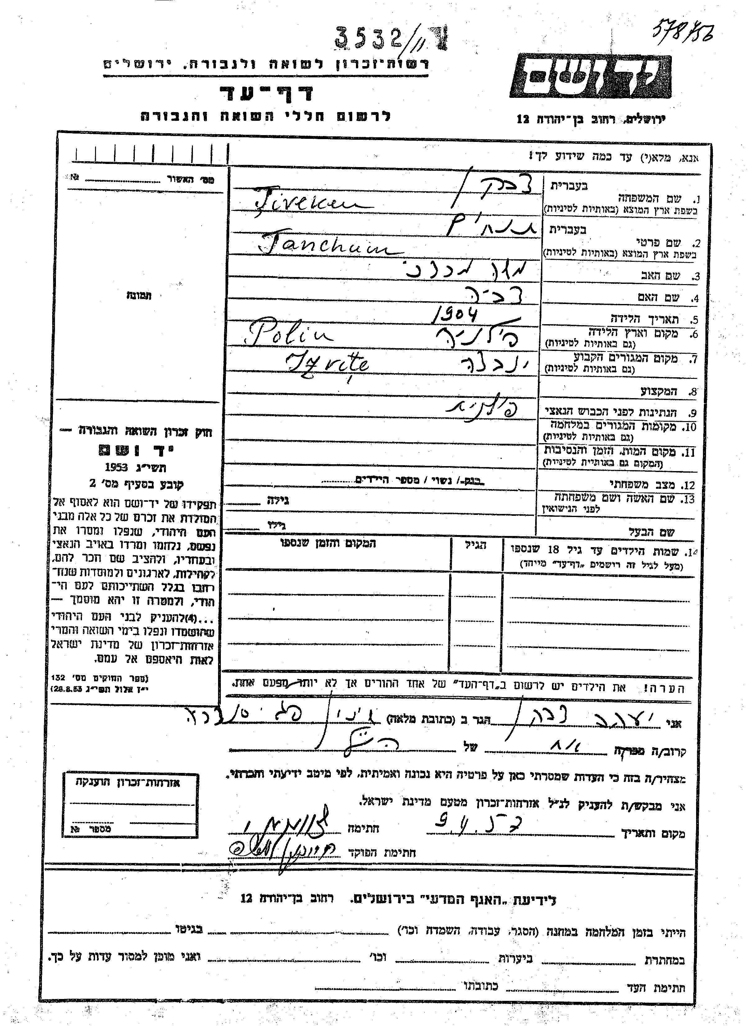 Tanchum wurde in der Schoah ermordet.