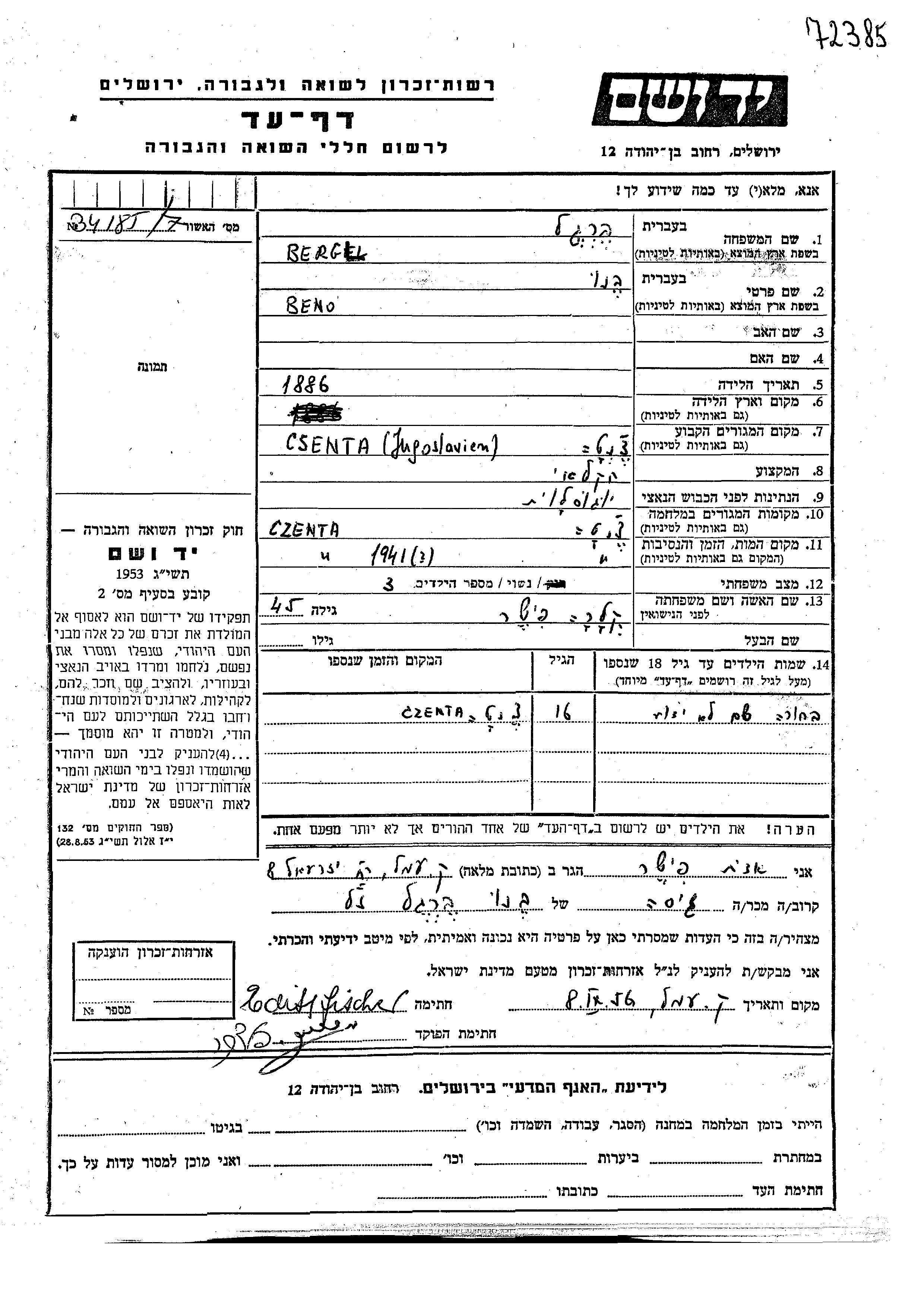 Vorname unbekannt Bergel wurde Er/sie war der/ die Sohn/Tochter von Beno und Klara, geb. Fisher. Er/Sie war Kind. Vor dem Zweiten Weltkrieg er/sie in Zenta, Jugoslawien. Während des Krieges war er/sie in Zenta, Jugoslawien.