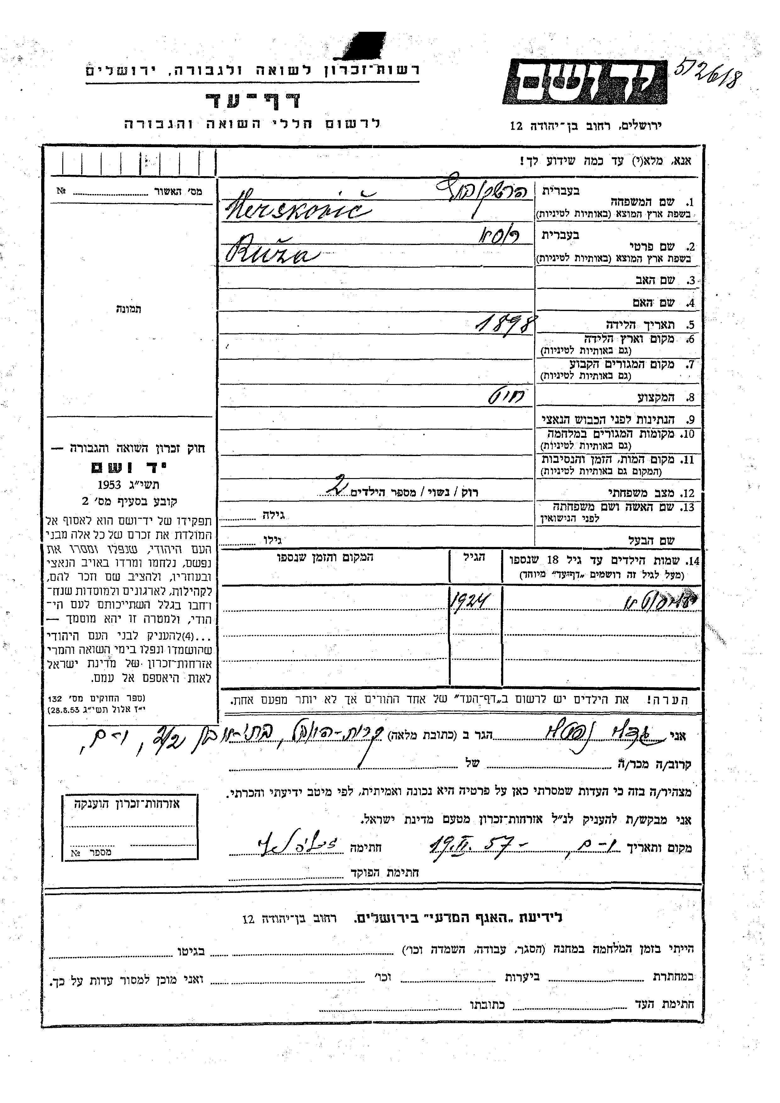 Vorname unbekannt Herskovic wurde im Jahr 1924 geboren. Er/sie war der/ die Sohn/Tochter von Ruza. Er/Sie war Kind.