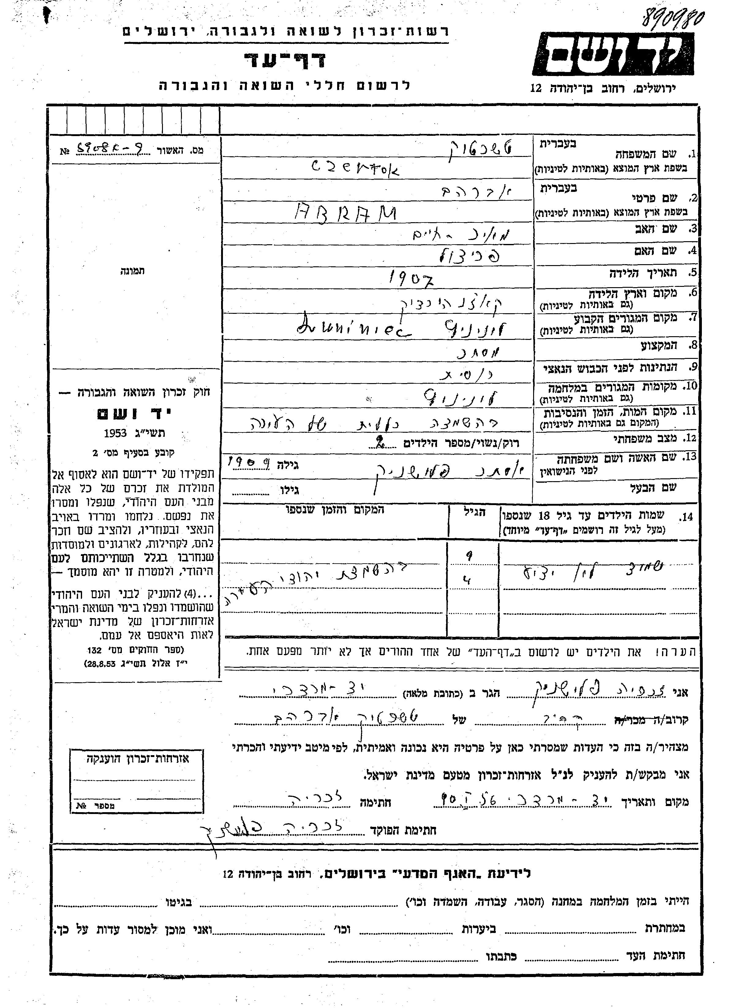 Vorname unbekannt Czertok wurde Er/sie war der/ die Sohn/Tochter von Abram und Ester, geb. Ploshnik. Er/Sie war Kind. Vor dem Zweiten Weltkrieg er/sie in Luniniec, Polen. Während des Krieges war er/sie in Luniniec, Polen.