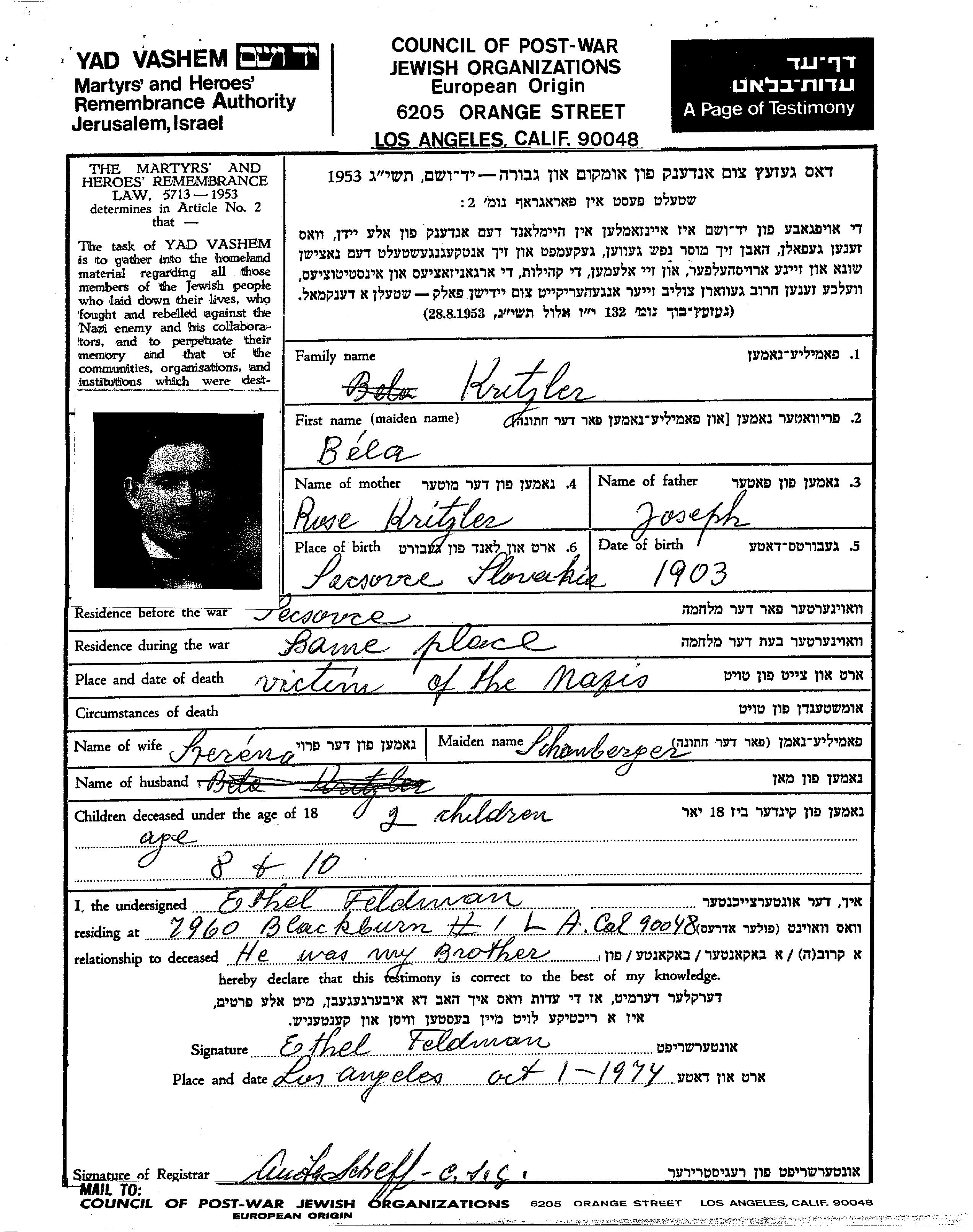 Vorname unbekannt Kritzler wurde Er/sie war der/ die Sohn/Tochter von Bela und Szerena, geb. Schönberger. Er/Sie war Kind. Vor dem Zweiten Weltkrieg er/sie in Seciovce, Tschechoslowakei. Während des Krieges war er/sie in Seciovce, Tschechoslowakei.