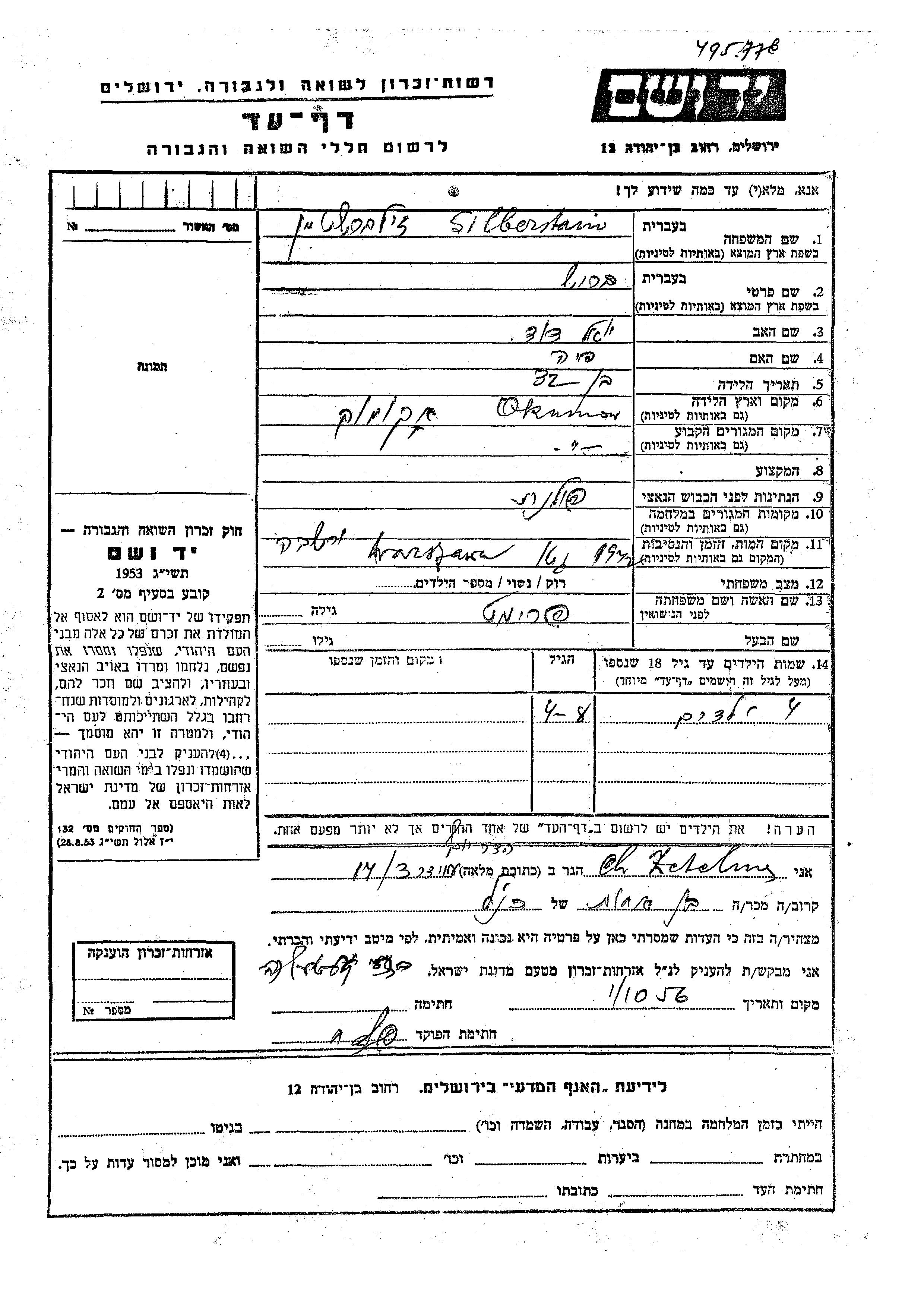Vorname unbekannt Silberstain wurde Er/sie war der/ die Sohn/Tochter von Berish, geb. Frimet. Er/Sie war Kind. Vor dem Zweiten Weltkrieg er/sie in Okumow.