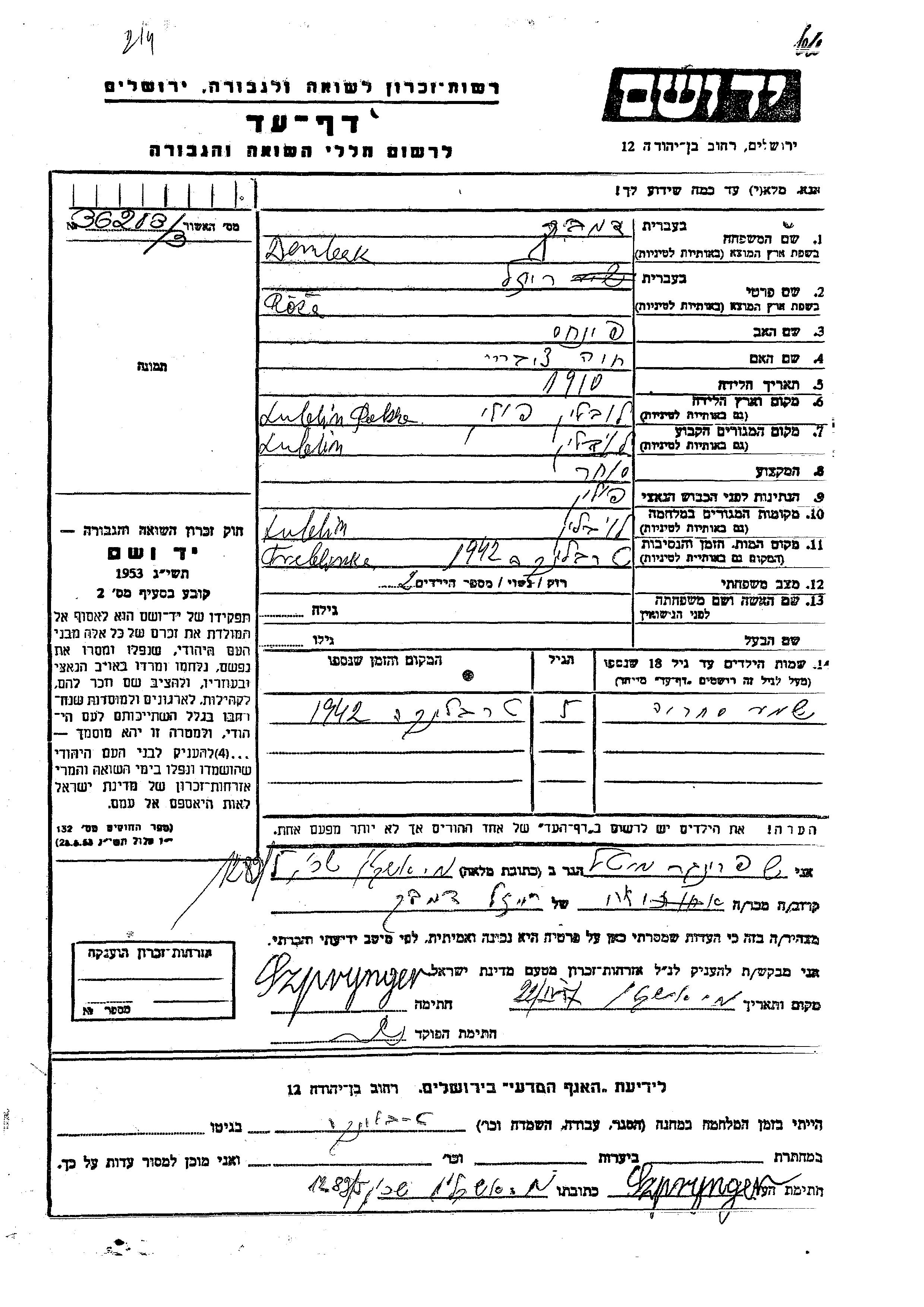 Dembak Vorname unbekannt Lublin, Polen Gedenkblatt