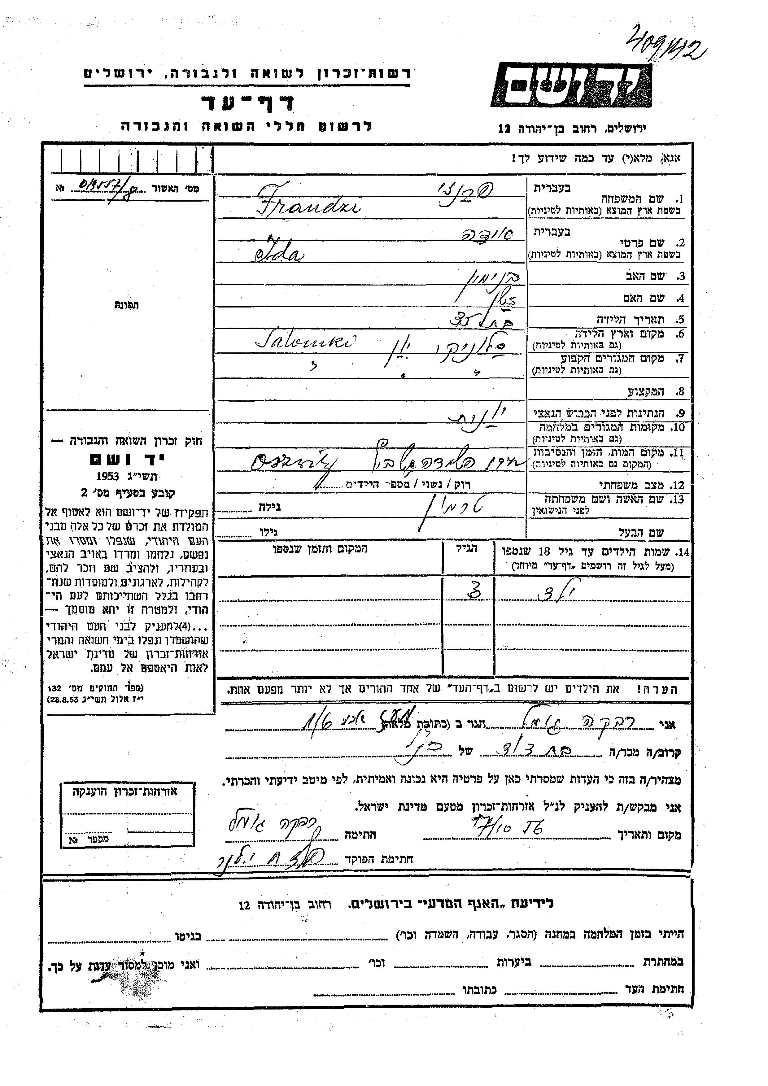 Vorname unbekannt Frenzhi wurde Er/sie war der/ die Sohn/Tochter von Ida, geb. Termin. Er/Sie war Kind. Vor dem Zweiten Weltkrieg er/sie in Salonika, Griechenland. Während des Krieges war er/sie in Salonika, Griechenland.