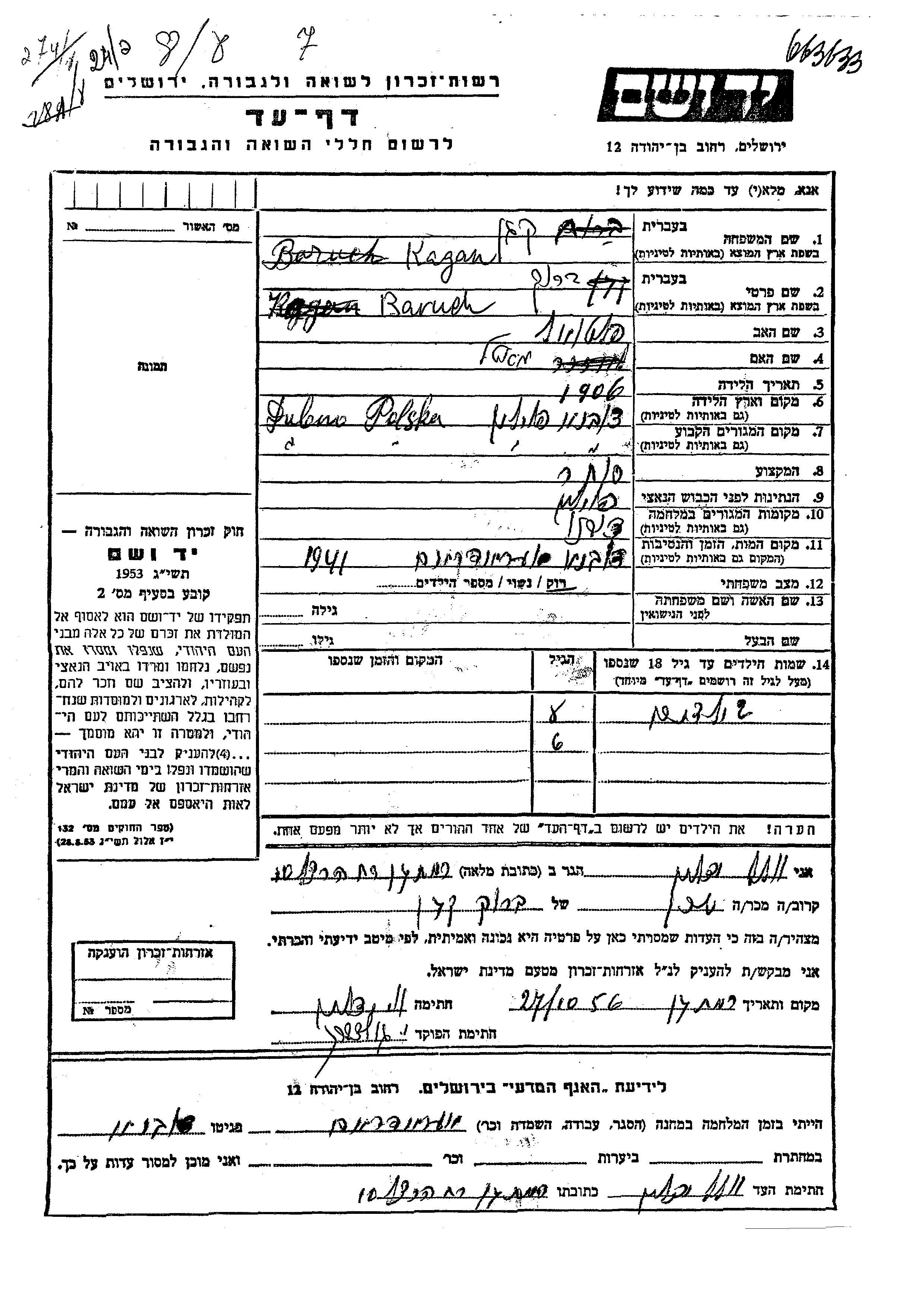 Vorname unbekannt Kagan wurde Er/sie war der/ die Sohn/Tochter von Baruch. Er/Sie war Kind. Vor dem Zweiten Weltkrieg er/sie in Dubno, Polen. Während des Krieges war er/sie in Dubno, Polen.