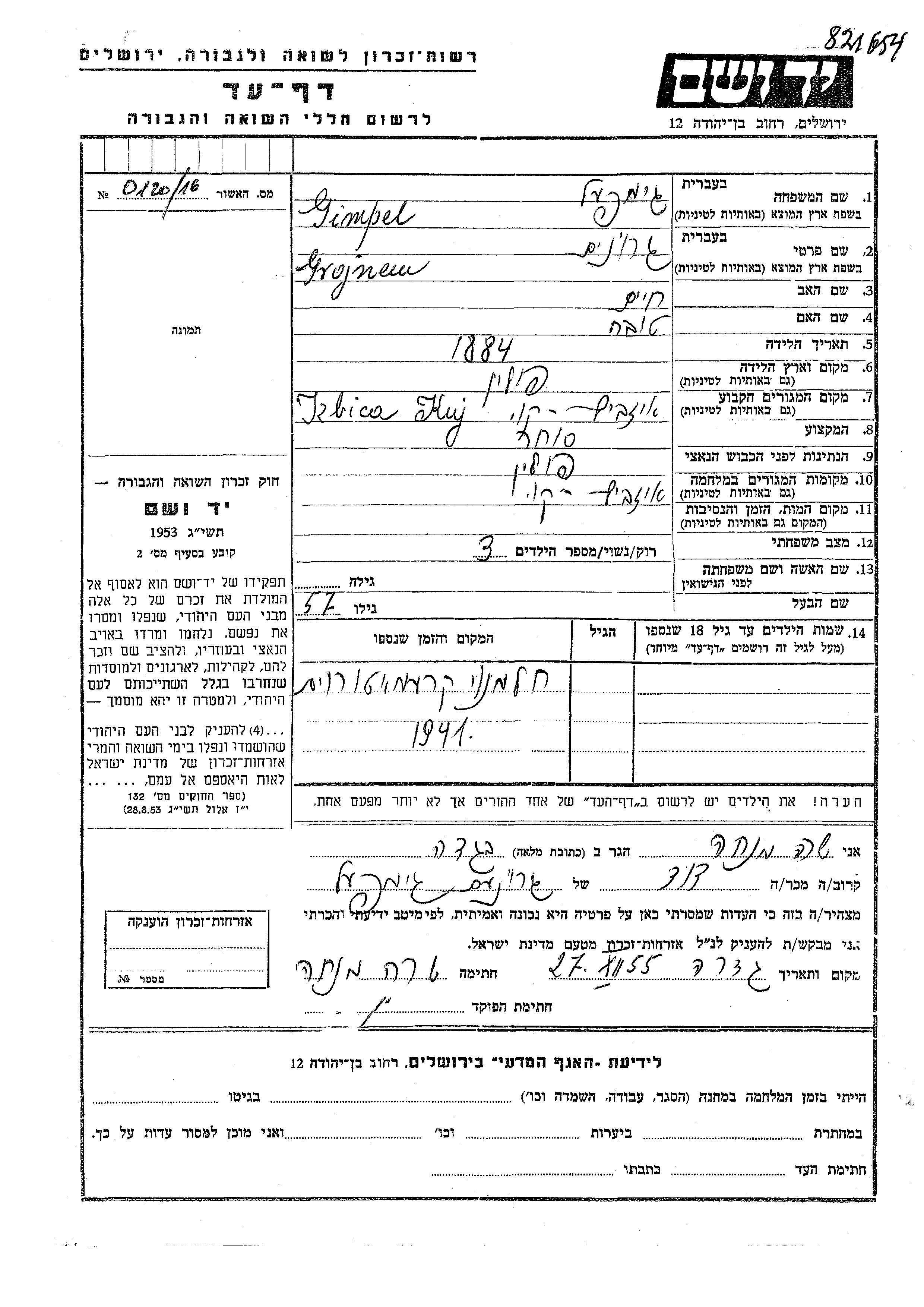 Grojnem Gempel wurde im Jahr 1884 in Polen geboren. Er war der Sohn von Khaim und Tova. Er war Kaufmann/-frau und Verheiratet. Vor dem Zweiten Weltkrieg lebte er in Izbica, Polen. Während des Krieges war er in Izbica, Polen.
