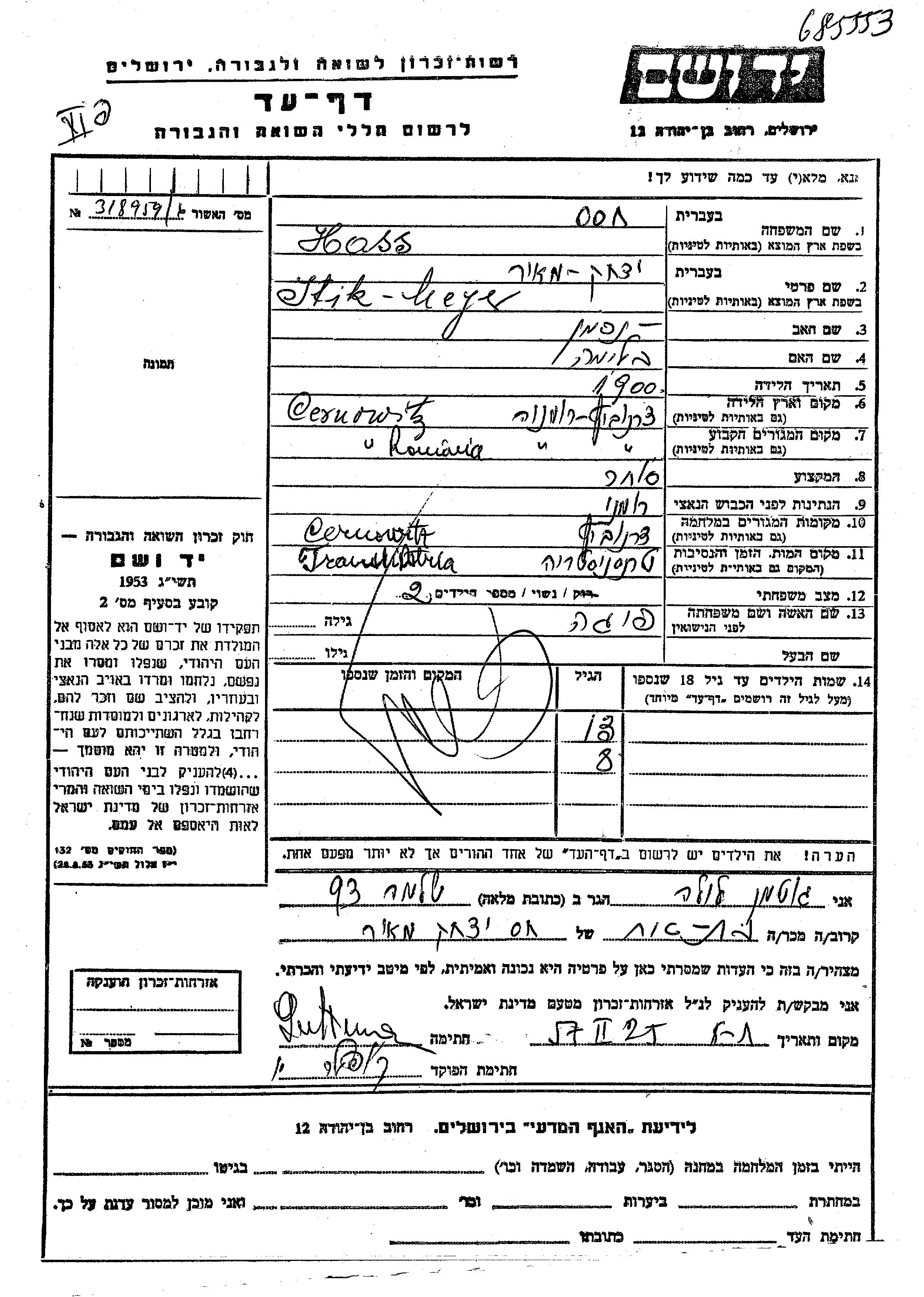 Hass Khases Vorname unbekannt Czernowitz, Rumänien Gedenkblatt