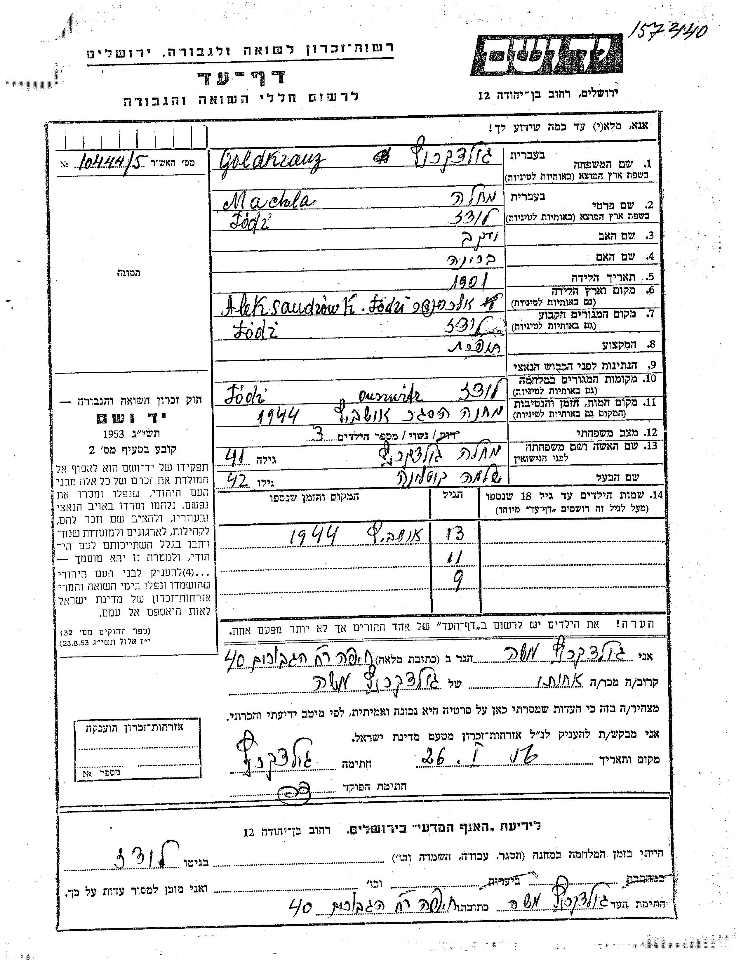 Kutlina Vorname unbekannt Lodz, Polen Gedenkblatt