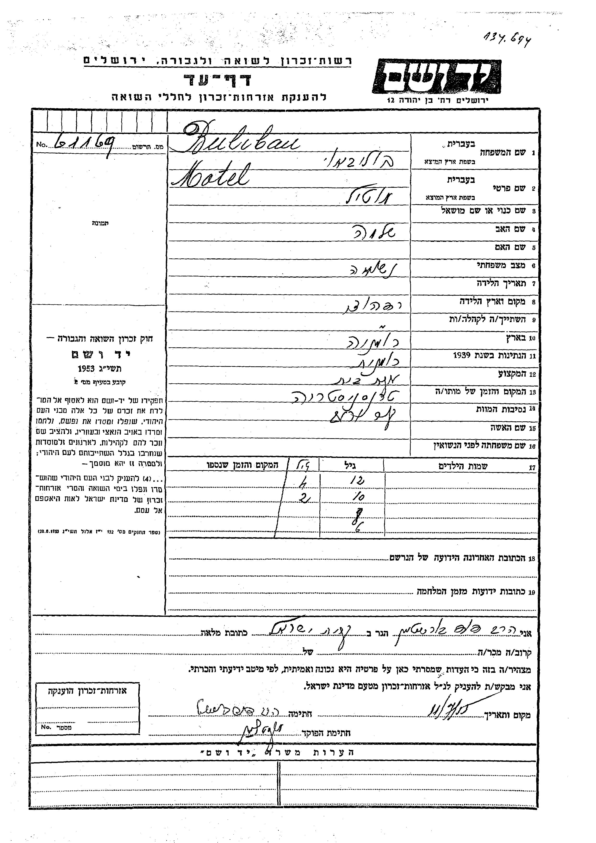 Vorname unbekannt Bulibau wurde Er/sie war der/ die Sohn/Tochter von Motel Motil. Er/Sie war Kind.