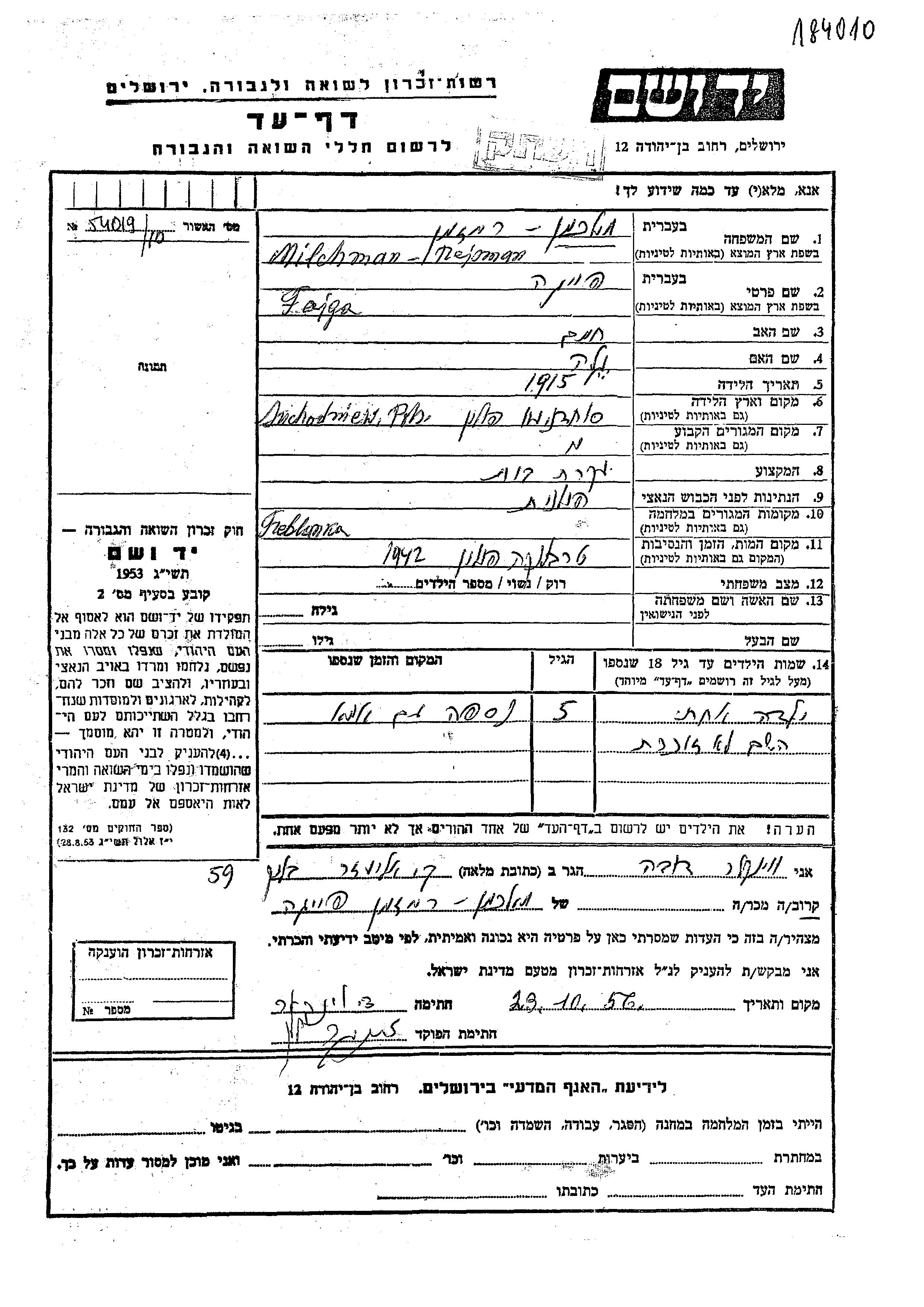 Milchman Rejzman Vorname unbekannt Suchedniow, Polen Gedenkblatt