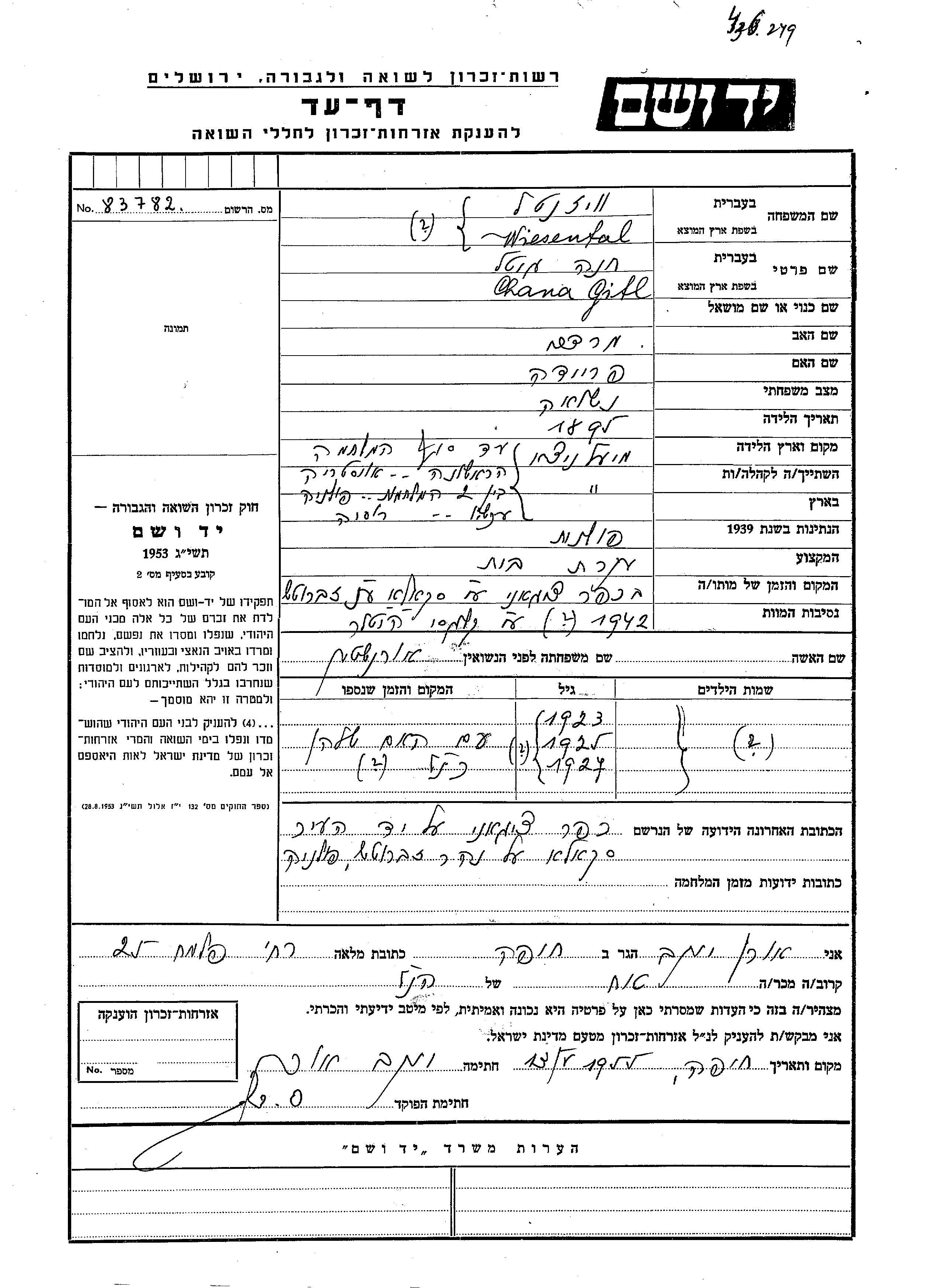 Vorname unbekannt Wiesental wurde im Jahr 1923 geboren. Er/sie war der/ die Sohn/Tochter von Chana Gitl, geb. Orenshtein. Er/Sie war Kind. Vor dem Zweiten Weltkrieg er/sie in Mielnica, Polen.