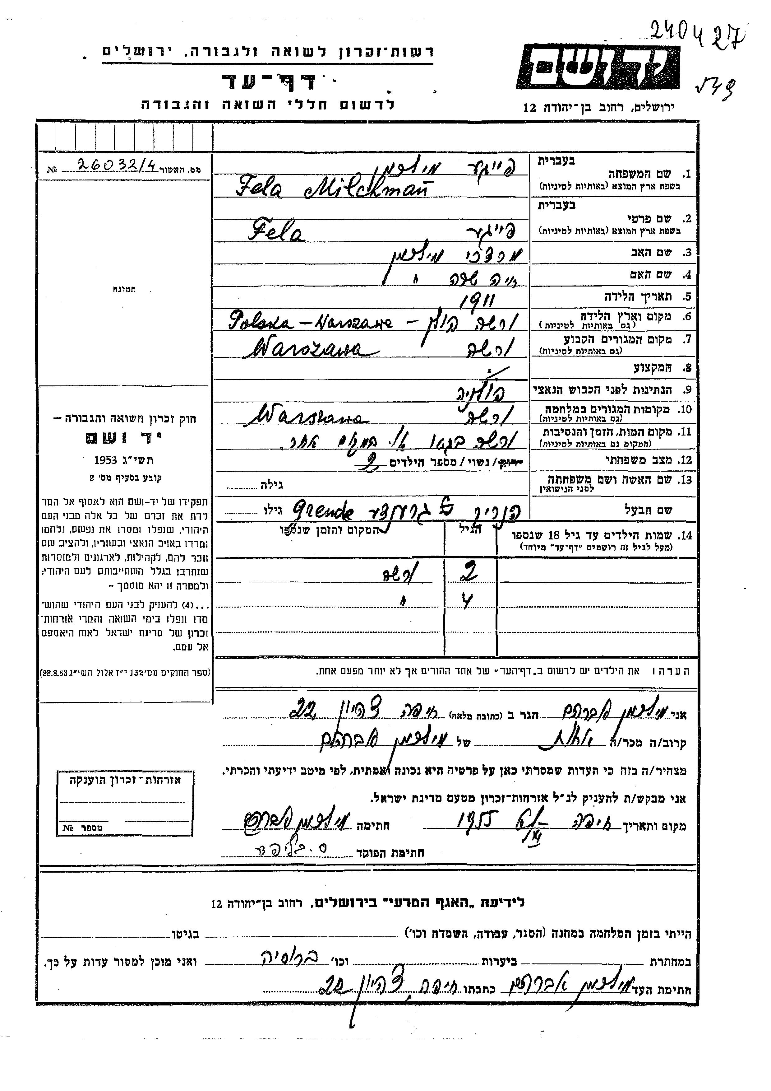 Vorname unbekannt Grende wurde Er/sie war der/ die Sohn/Tochter von Henrikh und Fela Feige, geb. Milchman. Er/Sie war Kind. Vor dem Zweiten Weltkrieg er/sie in Warszawa, Polen. Während des Krieges war er/sie in Warszawa, Polen.