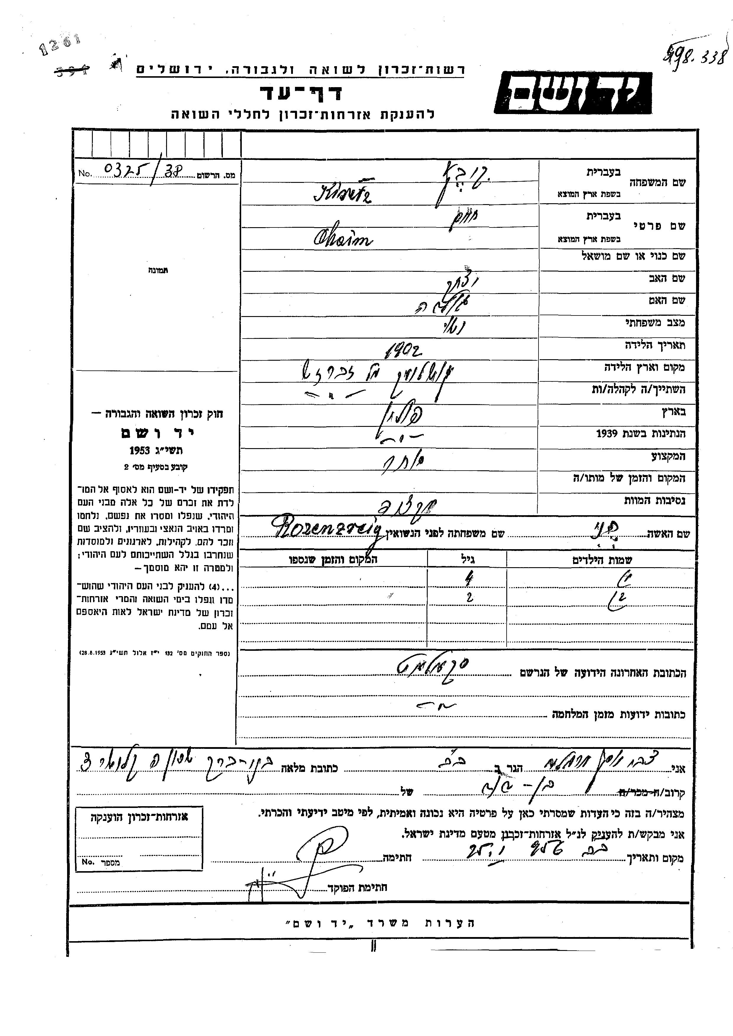 Kivetz Kovach Vorname unbekannt Koszlaki, Polen Gedenkblatt