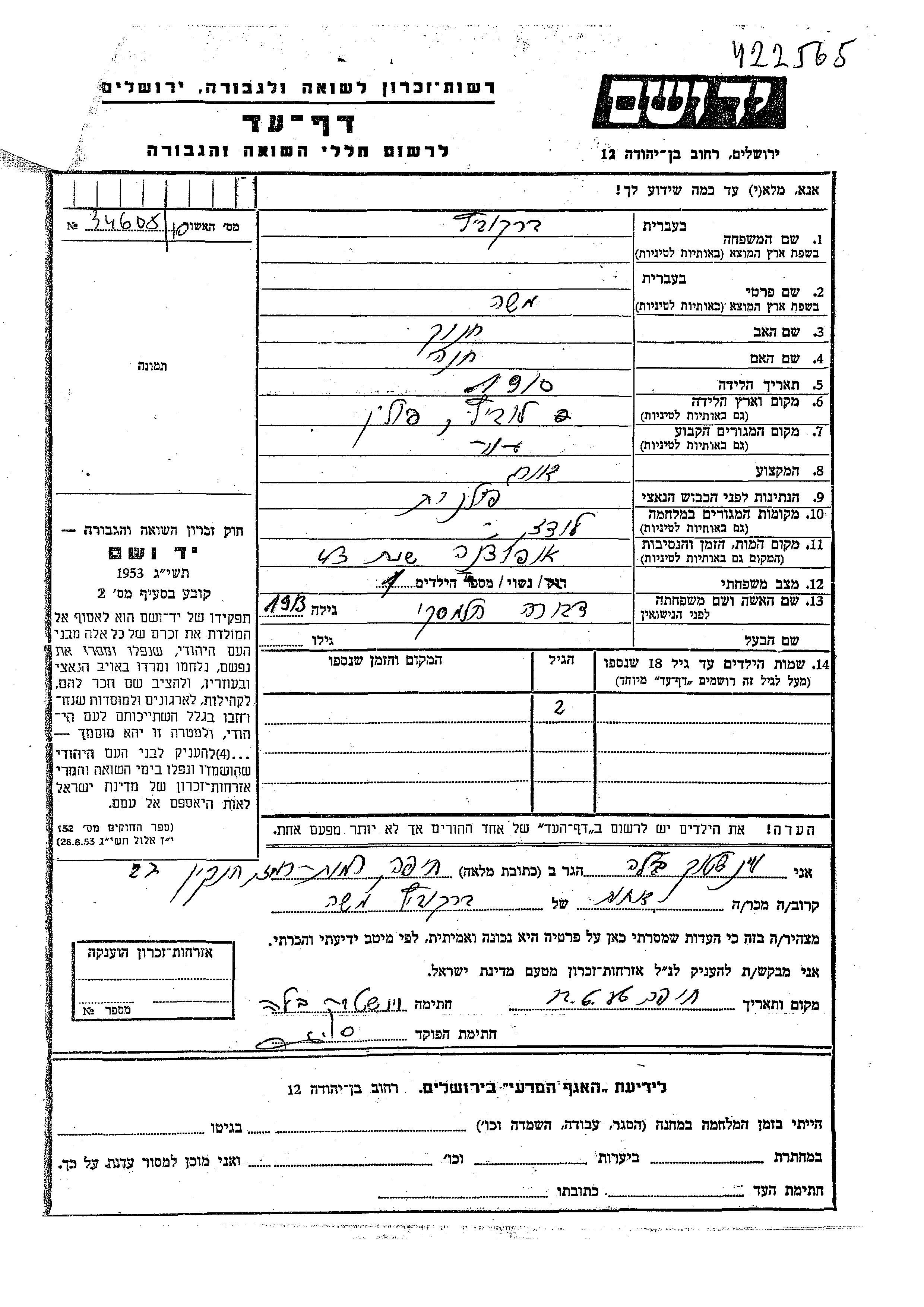 Vorname unbekannt Berkovitz wurde Er/sie war der/ die Sohn/Tochter von Moshe und Dvora, geb. Khelemski. Er/Sie war Kind. Vor dem Zweiten Weltkrieg er/sie in Lubiaz, Polen. Während des Krieges war er/sie in Lodz, Polen.