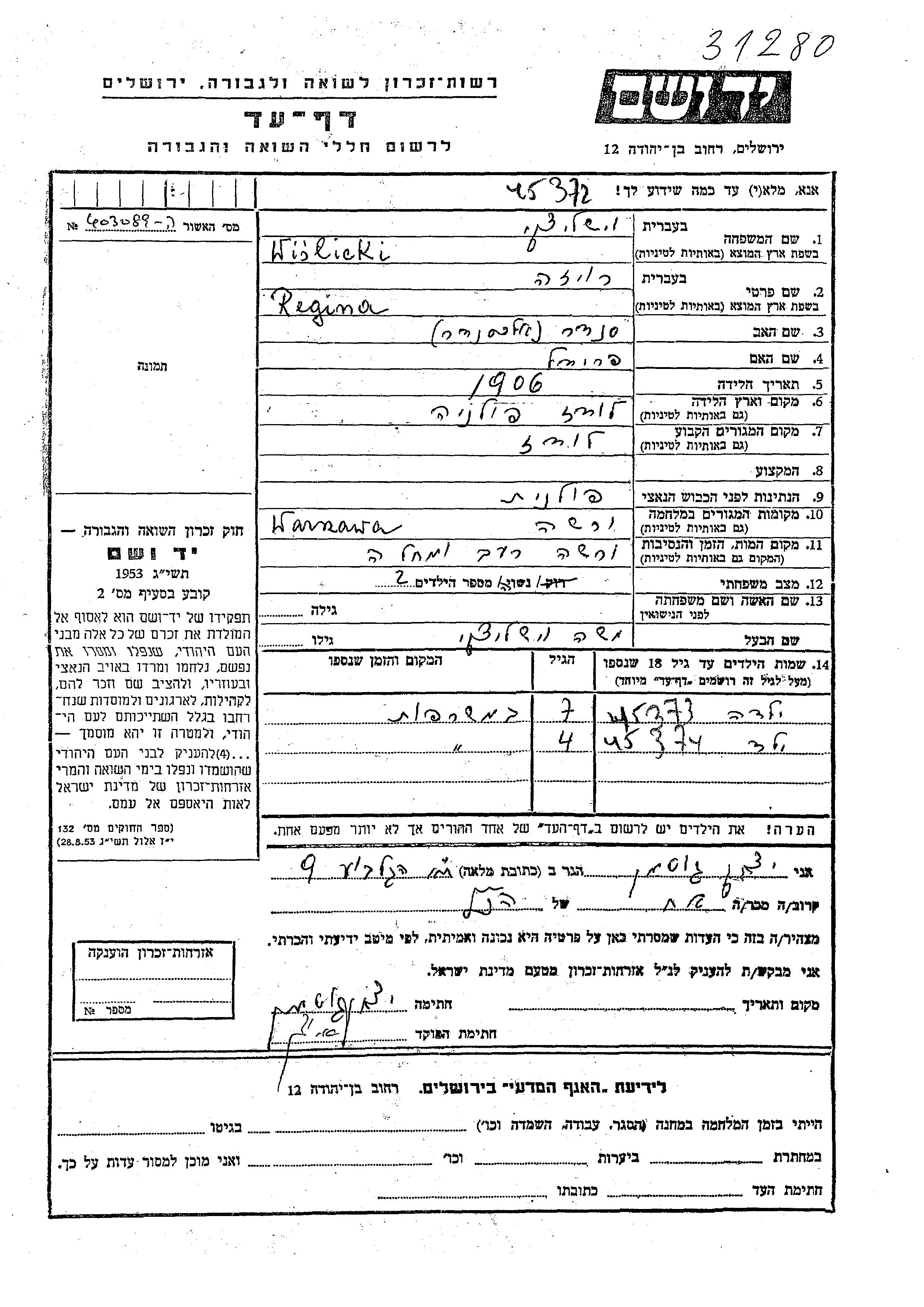Vorname unbekannt Wislicki wurde Er/sie war der/ die Sohn/Tochter von Moshe und Roiza Regina. Er/Sie war Kind. Vor dem Zweiten Weltkrieg er/sie in Lodz, Polen. Während des Krieges war er/sie in Warsaw, Polen.