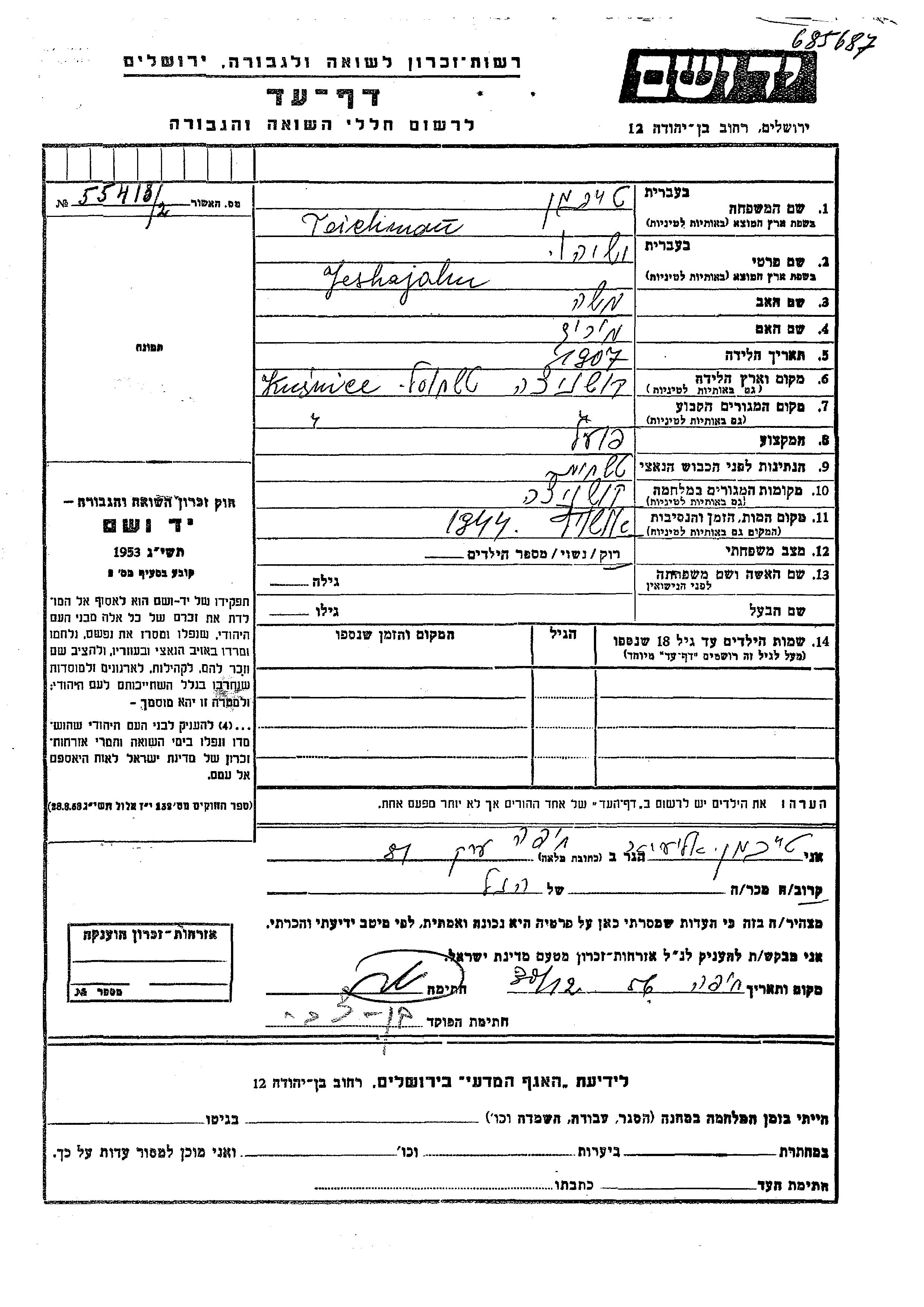 Vorname unbekannt Teichman Tikhman wurde Er/sie war der/ die Sohn/Tochter von Icchak und Sheina. Er/Sie war Kind. Vor dem Zweiten Weltkrieg er/sie in Krašnik, Polen. Während des Krieges war er/sie in Krašnik, Polen.
