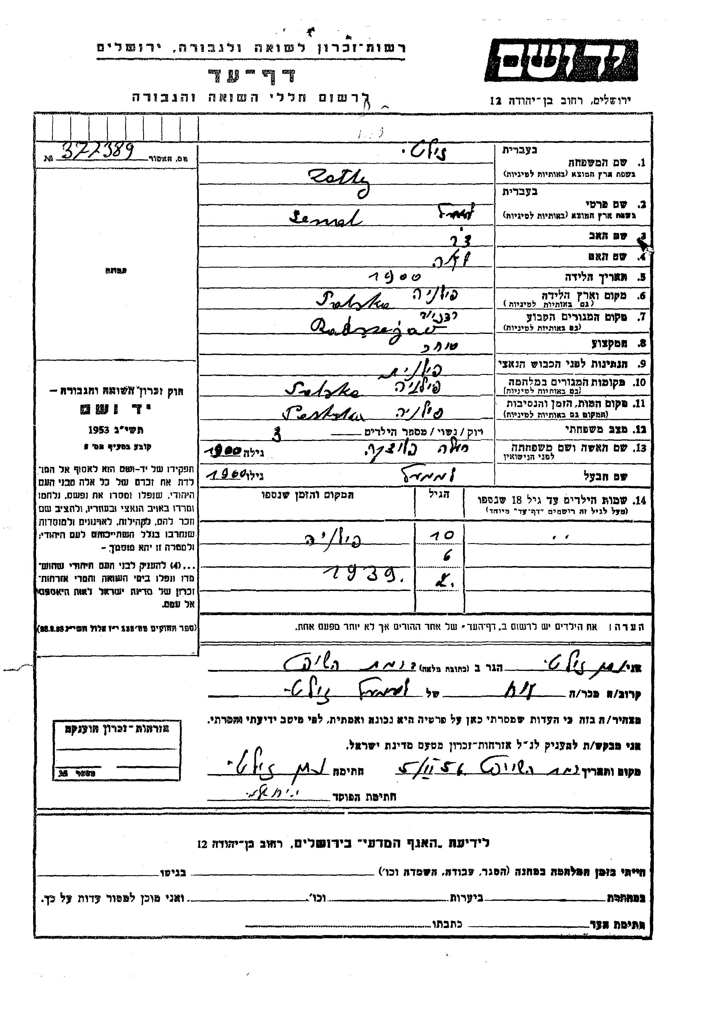 Vorname unbekannt Zolty wurde Er/sie war der/ die Sohn/Tochter von Lemel und Rela, geb. Plotzki. Er/Sie war Kind. Vor dem Zweiten Weltkrieg er/sie in Radziejow, Polen. Während des Krieges war er/sie in Polen.