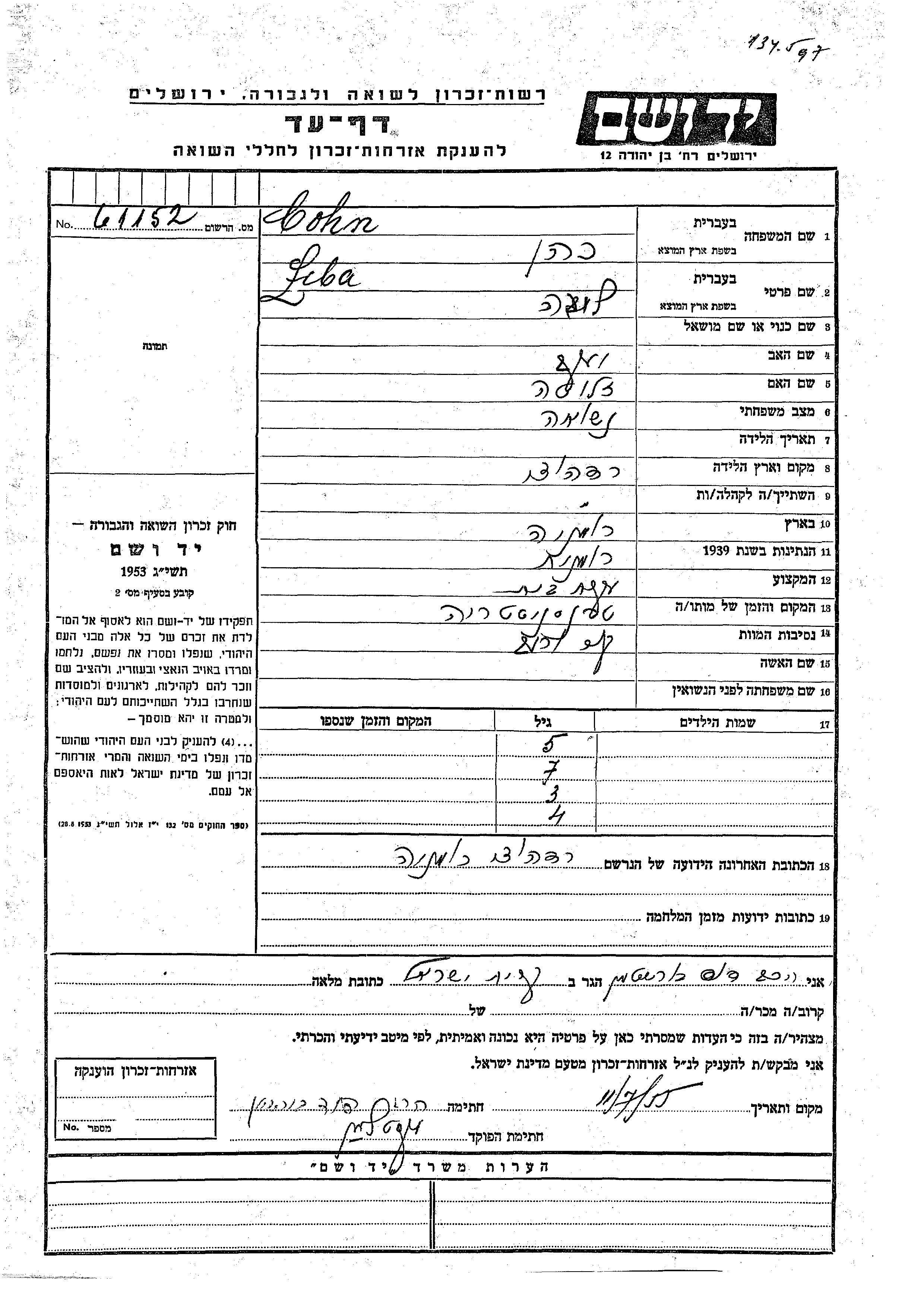 Vorname unbekannt Cohn wurde Er/sie war der/ die Sohn/Tochter von Liba. Er/Sie war Kind. Vor dem Zweiten Weltkrieg er/sie in Radaholc, Rumänien.