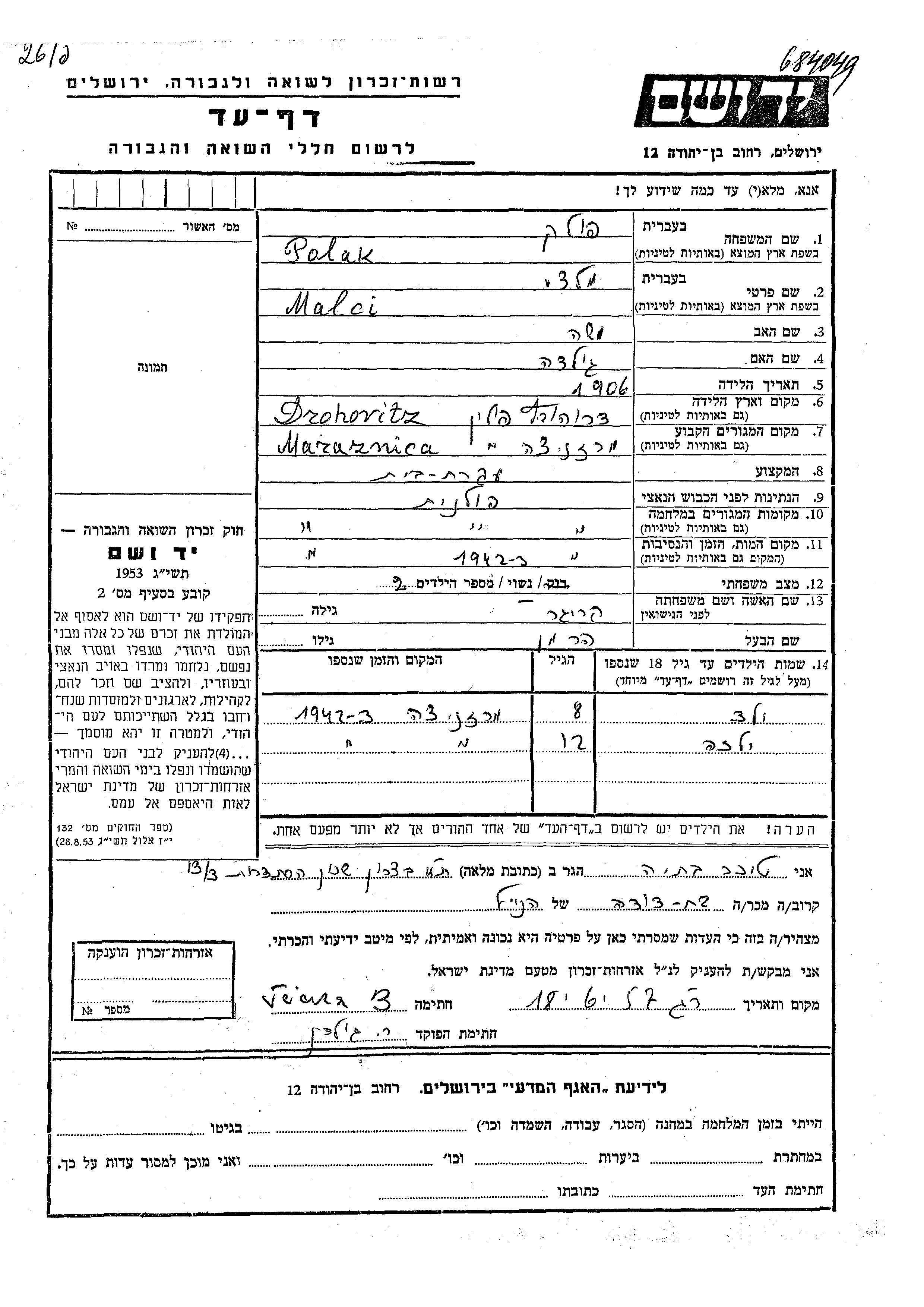 Vorname unbekannt Polak wurde Er/sie war der/ die Sohn/Tochter von Herman und Malci, geb. Briger. Er/Sie war Kind. Vor dem Zweiten Weltkrieg er/sie in Maraznica, Polen. Während des Krieges war er/sie in Maraznica, Polen.