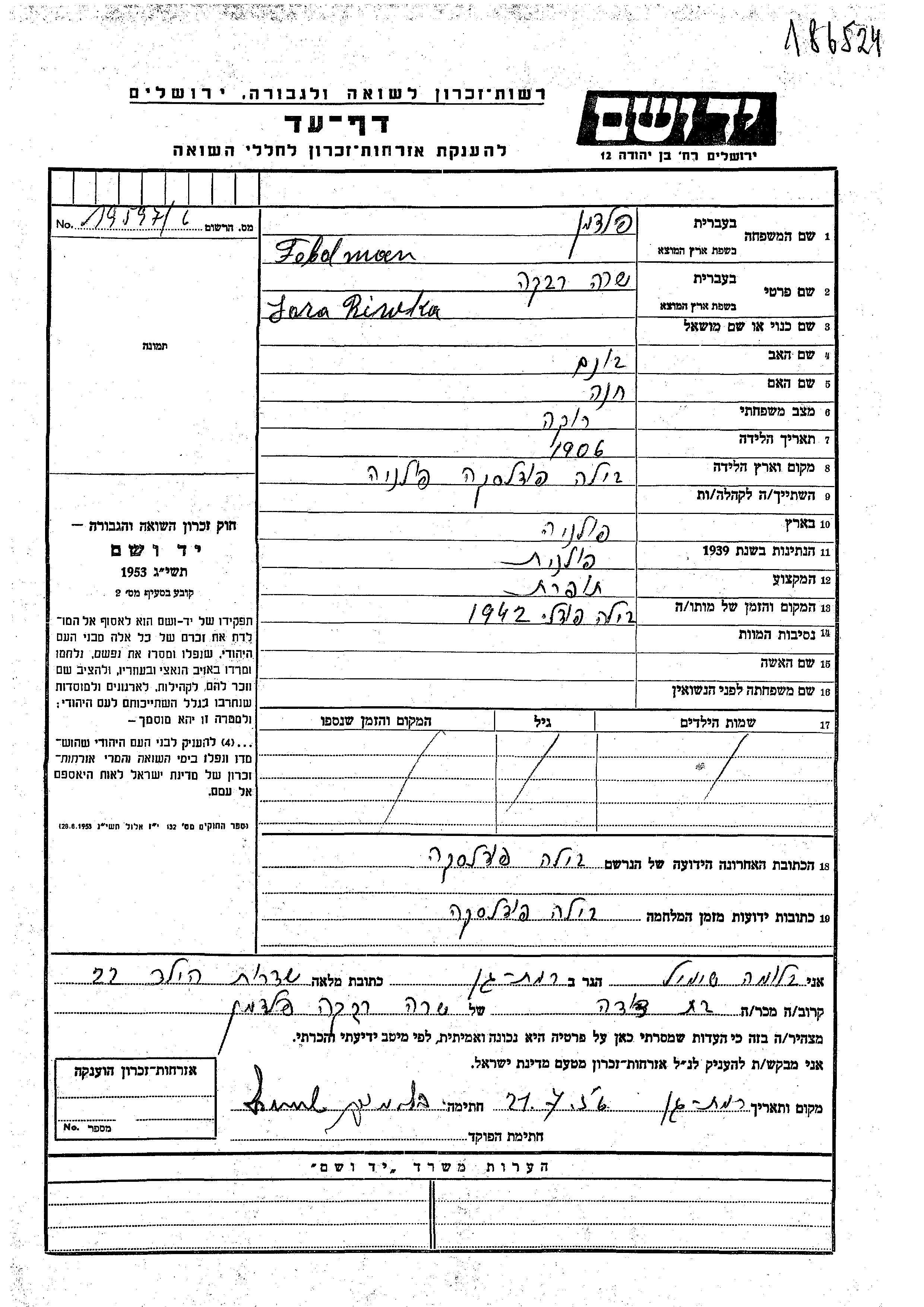 Feldman Riwka Sara 1906 Polen Gedenkblatt