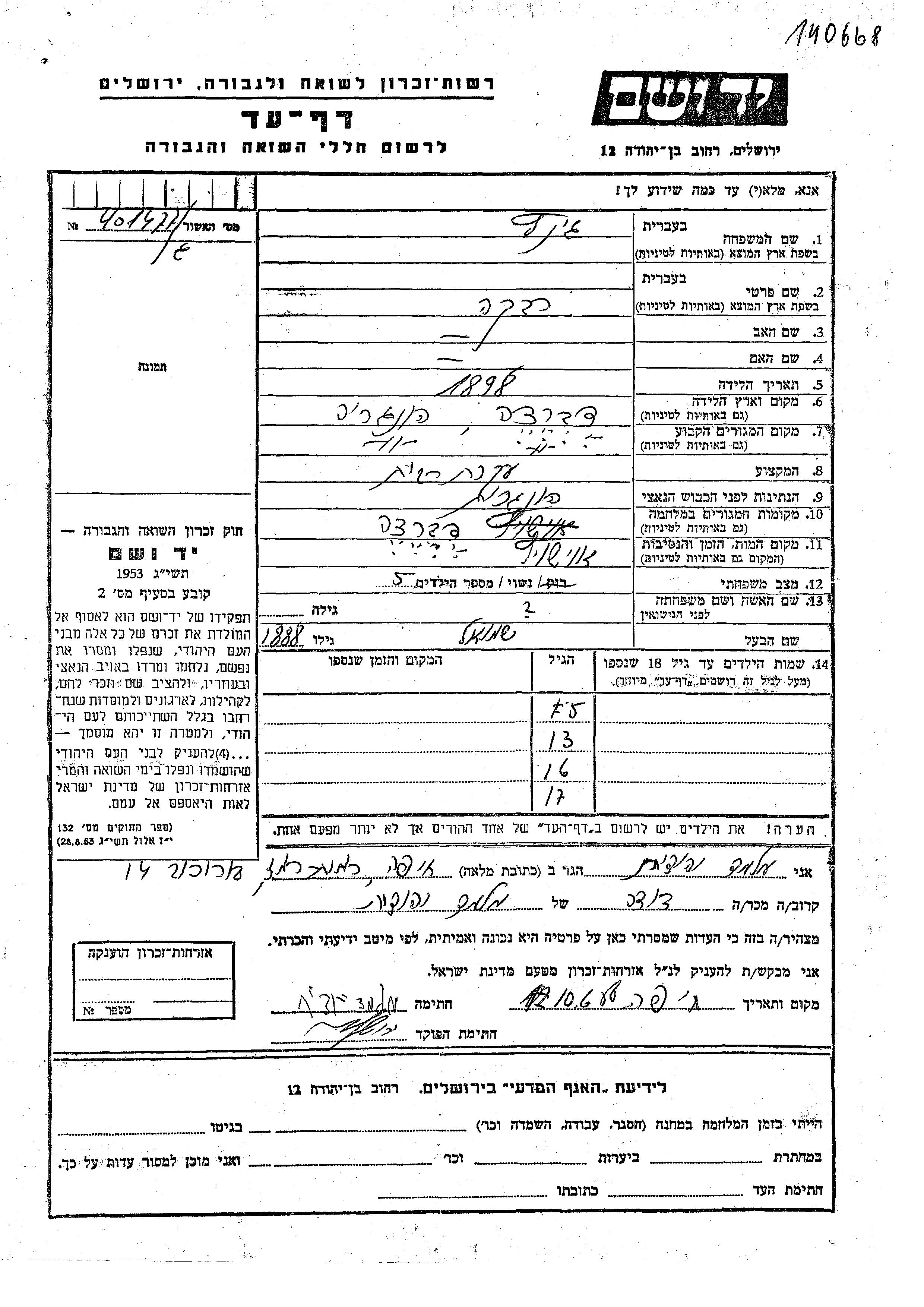 Vorname unbekannt Gintz wurde Er/sie war der/ die Sohn/Tochter von Shmuel und Rivka. Er/Sie war Kind. Vor dem Zweiten Weltkrieg er/sie in Debrece, Ungarn. Während des Krieges war er/sie in Debrece, Ungarn.