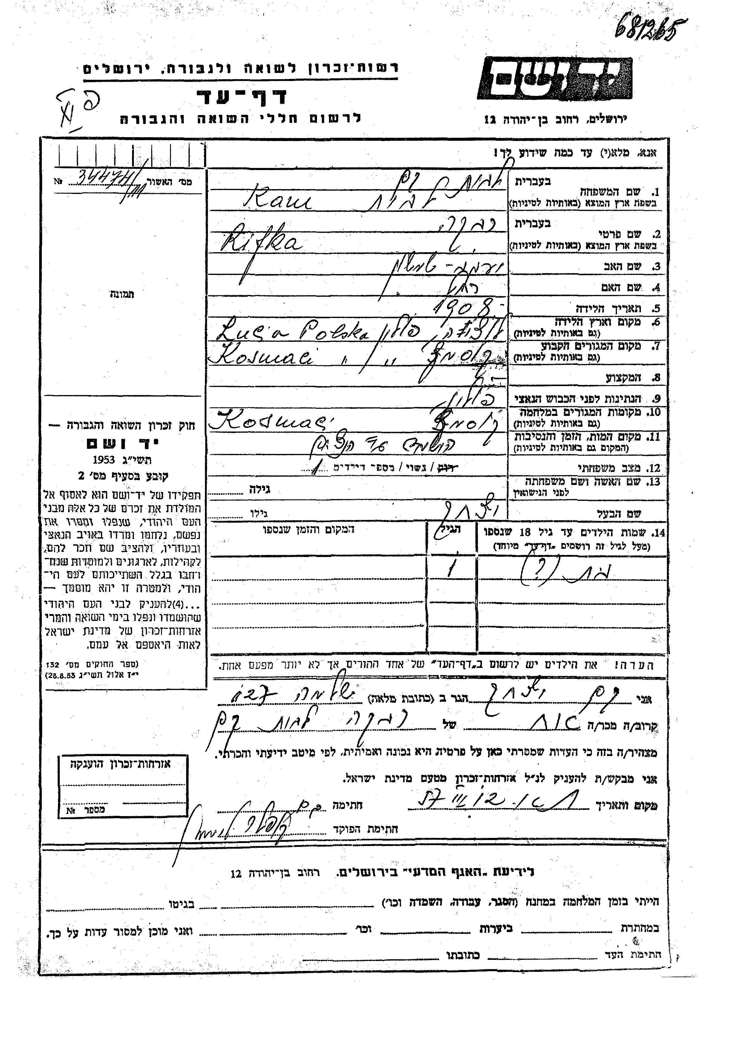 Vorname unbekannt Kam wurde Er/sie war der/ die Sohn/Tochter von Yitzkhak und Rivka, geb. Kam. Er/Sie war Kind. Vor dem Zweiten Weltkrieg er/sie in Kosmach, Polen. Während des Krieges war er/sie in Kosmach, Polen.