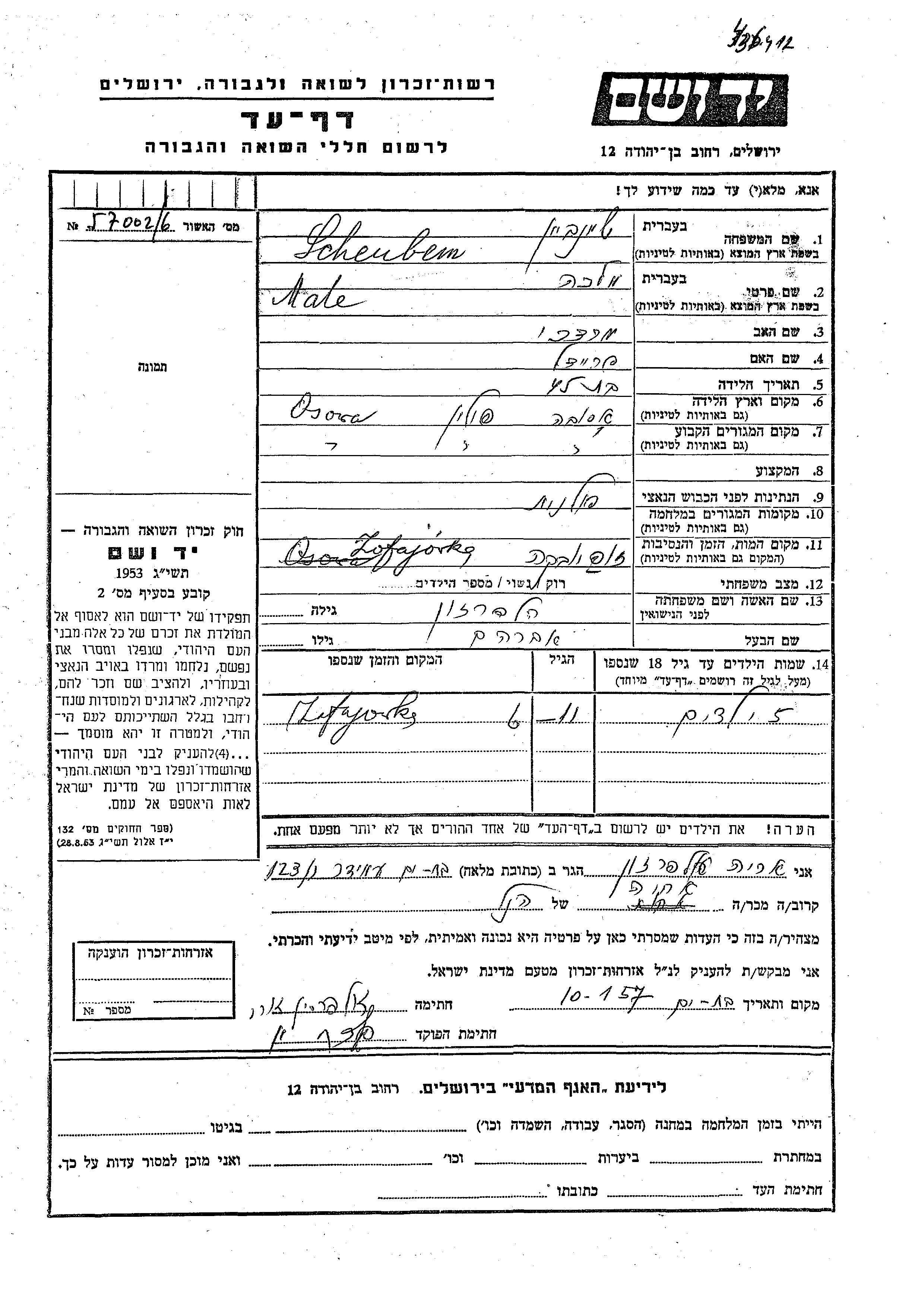 Vorname unbekannt Schenbein wurde Er/sie war der/ die Sohn/Tochter von Avraham und Malka, geb. Halperson. Er/Sie war Kind. Vor dem Zweiten Weltkrieg er/sie in Osowa, Polen. Während des Krieges war er/sie in Osowa, Polen.