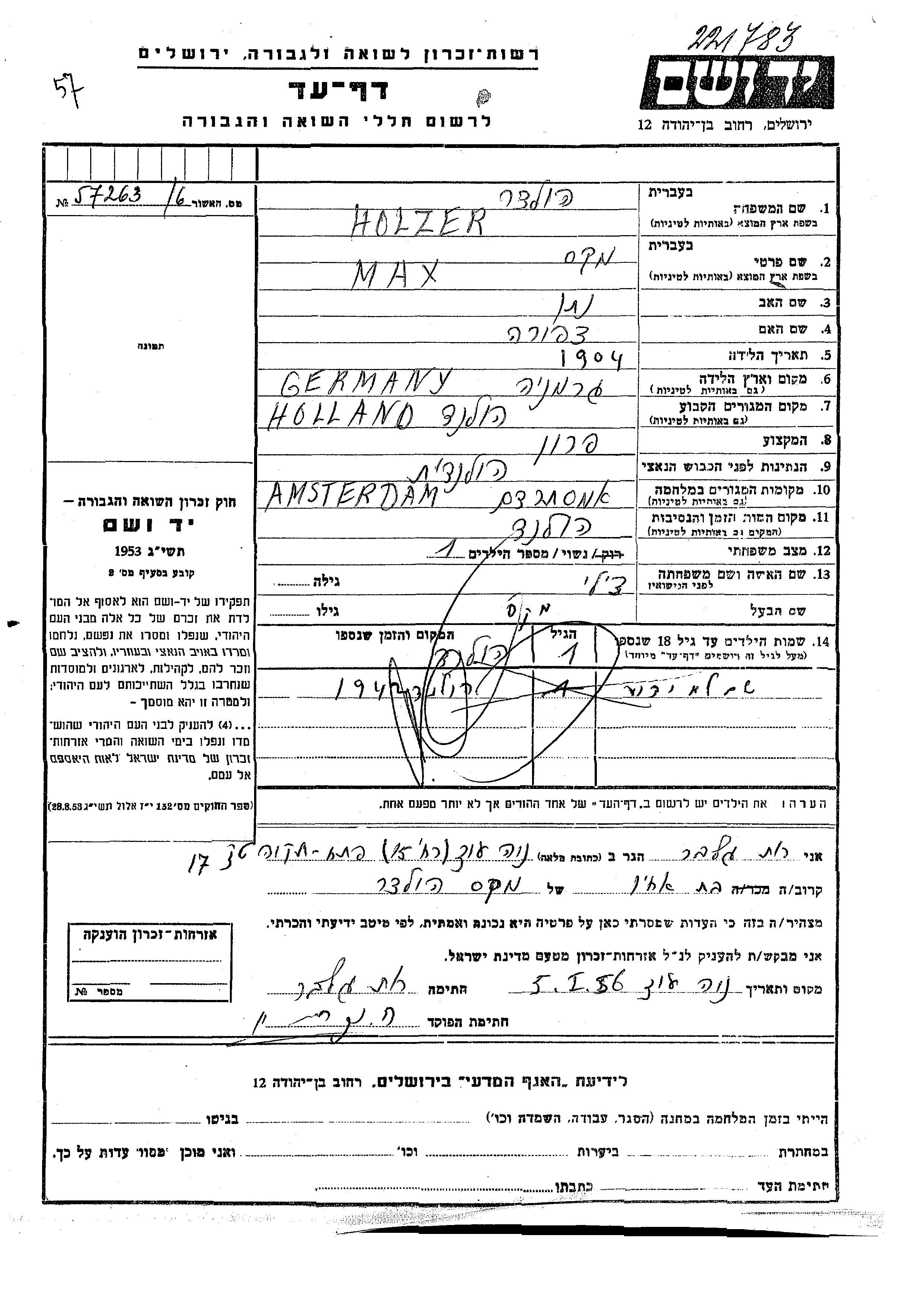 Vorname unbekannt Holzer wurde Er/sie war der/ die Sohn/Tochter von Max und Tzili. Er/Sie war Kind. Vor dem Zweiten Weltkrieg er/sie in Niederlande. Während des Krieges war er/sie in Amsterdam, Niederlande.