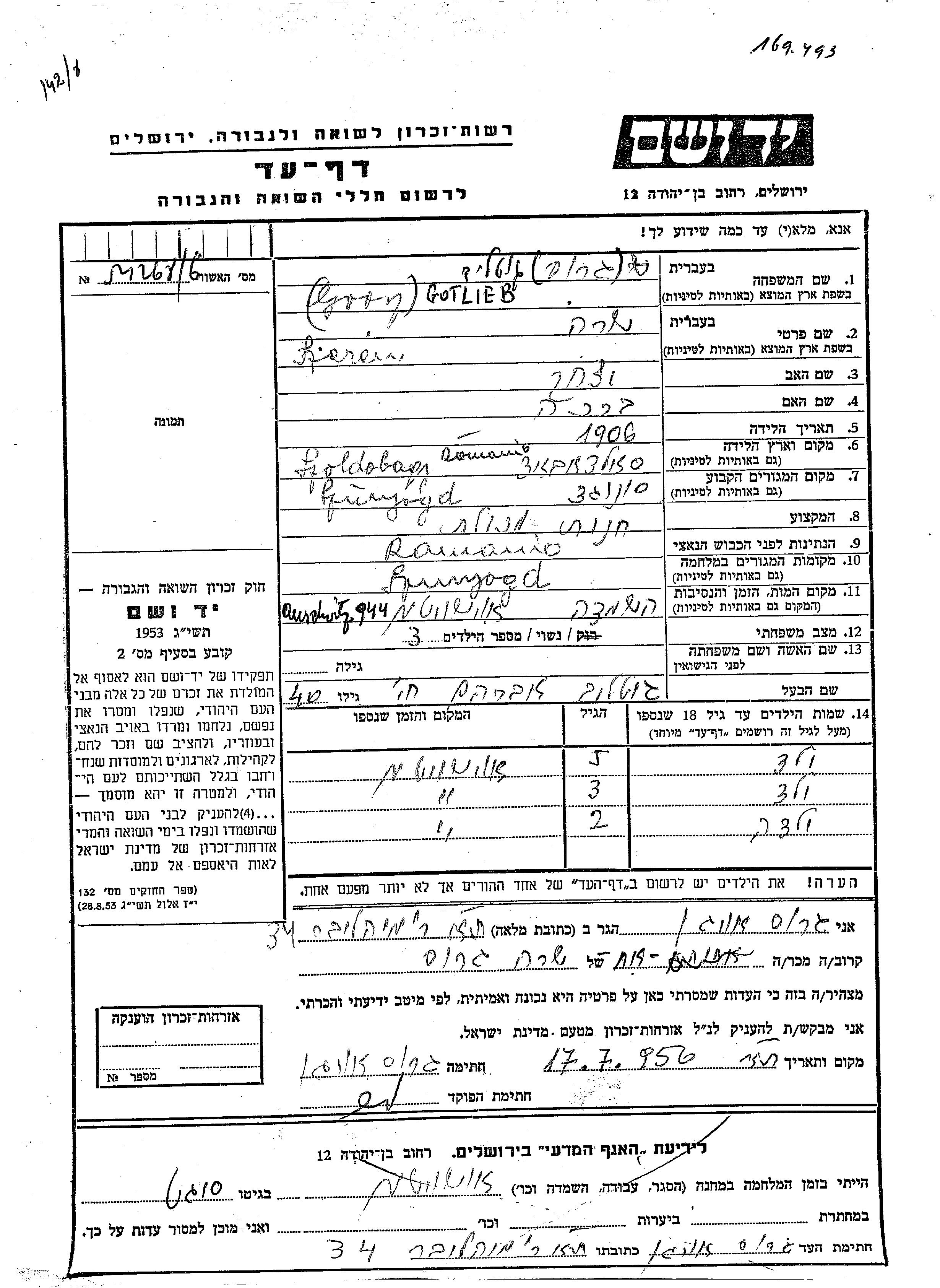 Vorname unbekannt Gotlieb wurde Er/sie war der/ die Sohn/Tochter von Avraham und Szeren, geb. Gros. Er/Sie war Kind. Vor dem Zweiten Weltkrieg er/sie in Szunyogd, Rumänien. Während des Krieges war er/sie in Szunyogd, Rumänien.