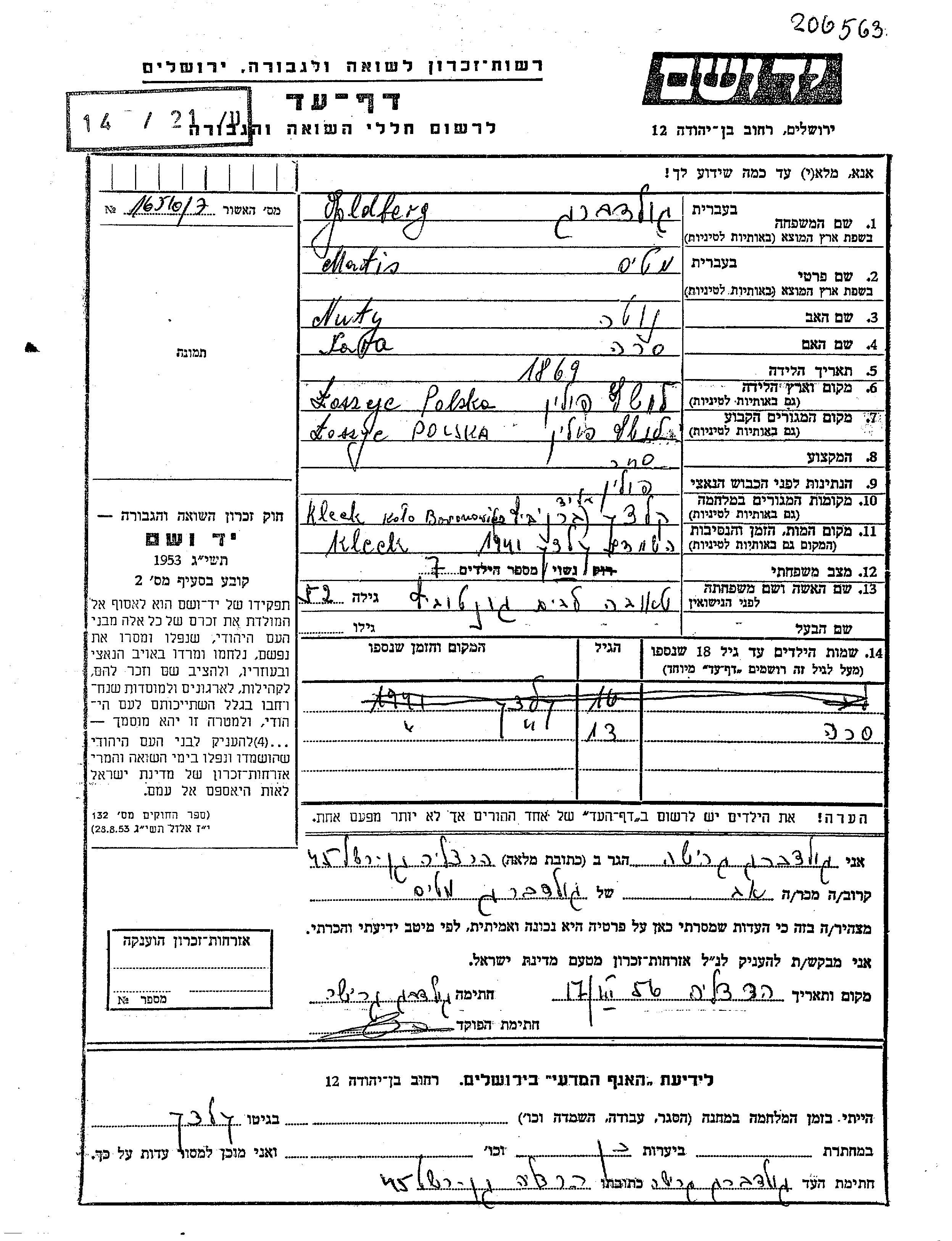Goldberg Vorname unbekannt Loszyce, Polen Gedenkblatt