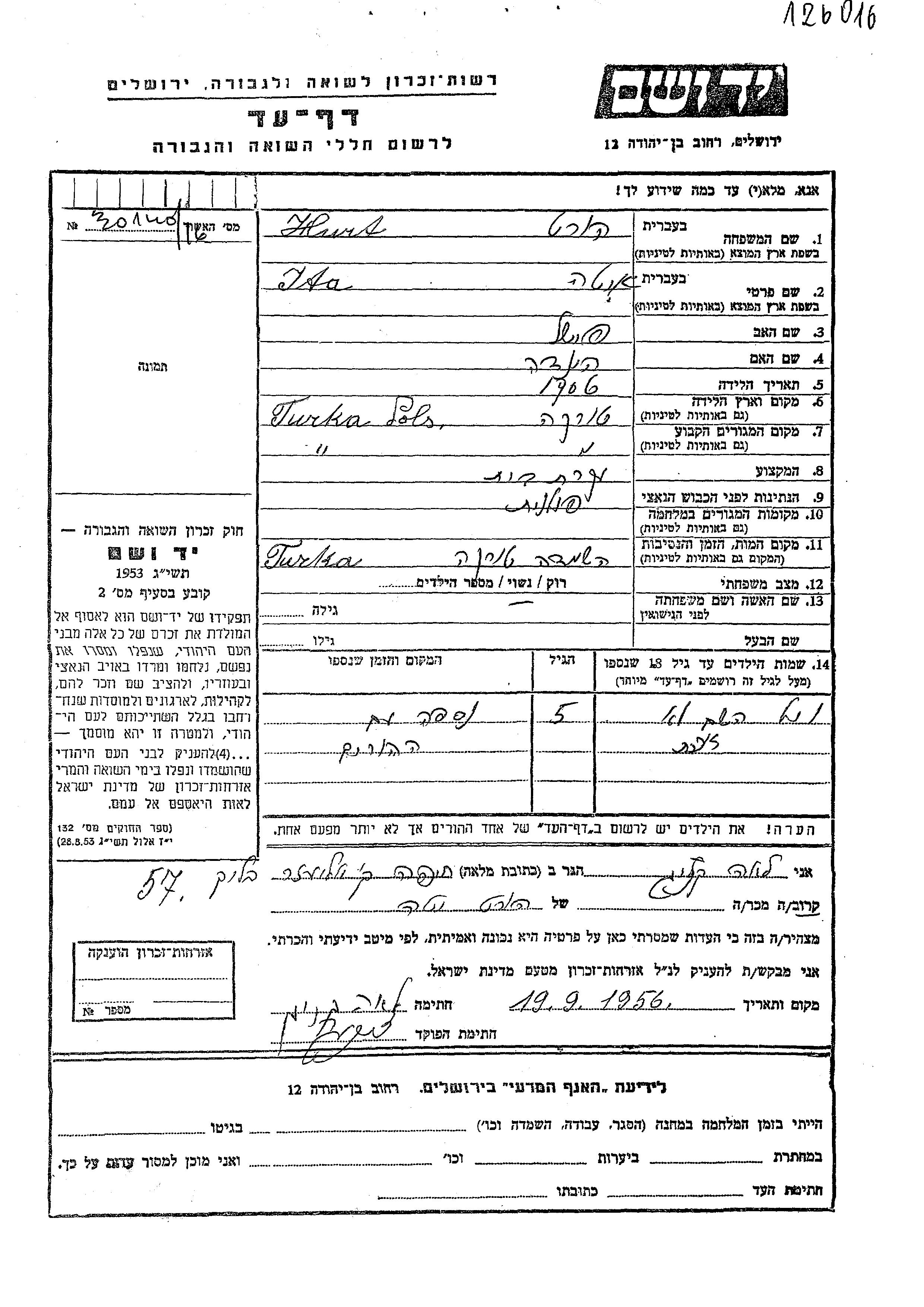 Vorname unbekannt Hurt wurde Er/sie war der/ die Sohn/Tochter von Yta. Er/Sie war Kind. Vor dem Zweiten Weltkrieg er/sie in Turka, Polen.