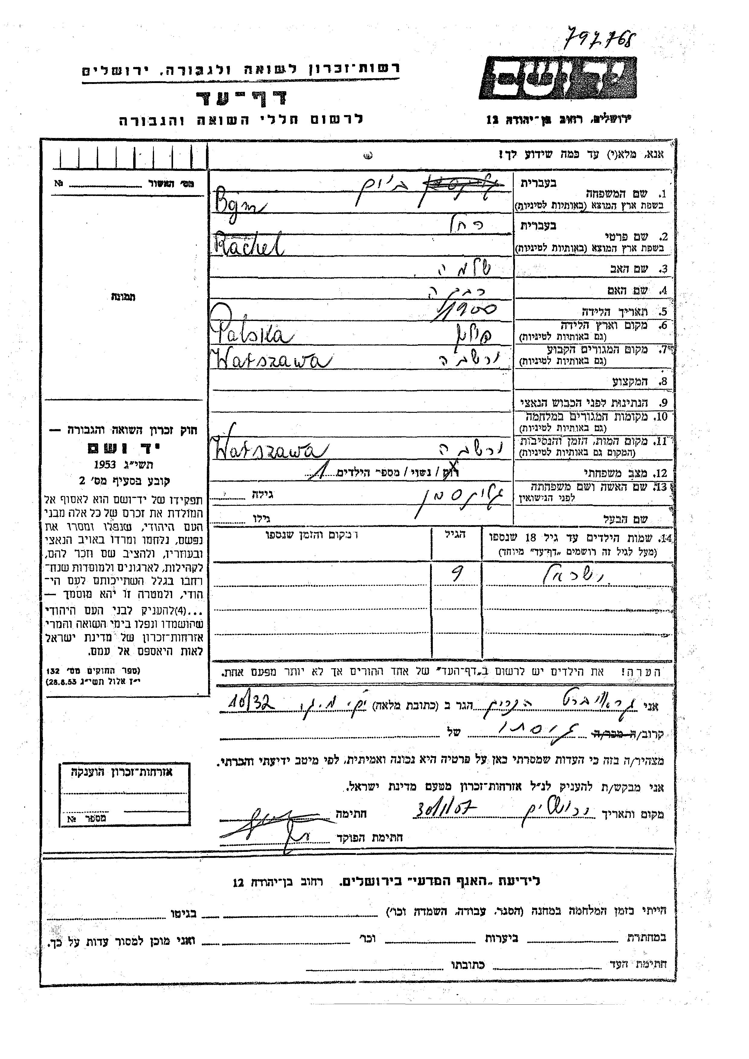 Rachel wurde in der Schoah ermordet. Todesort: Warszawa, Polen.