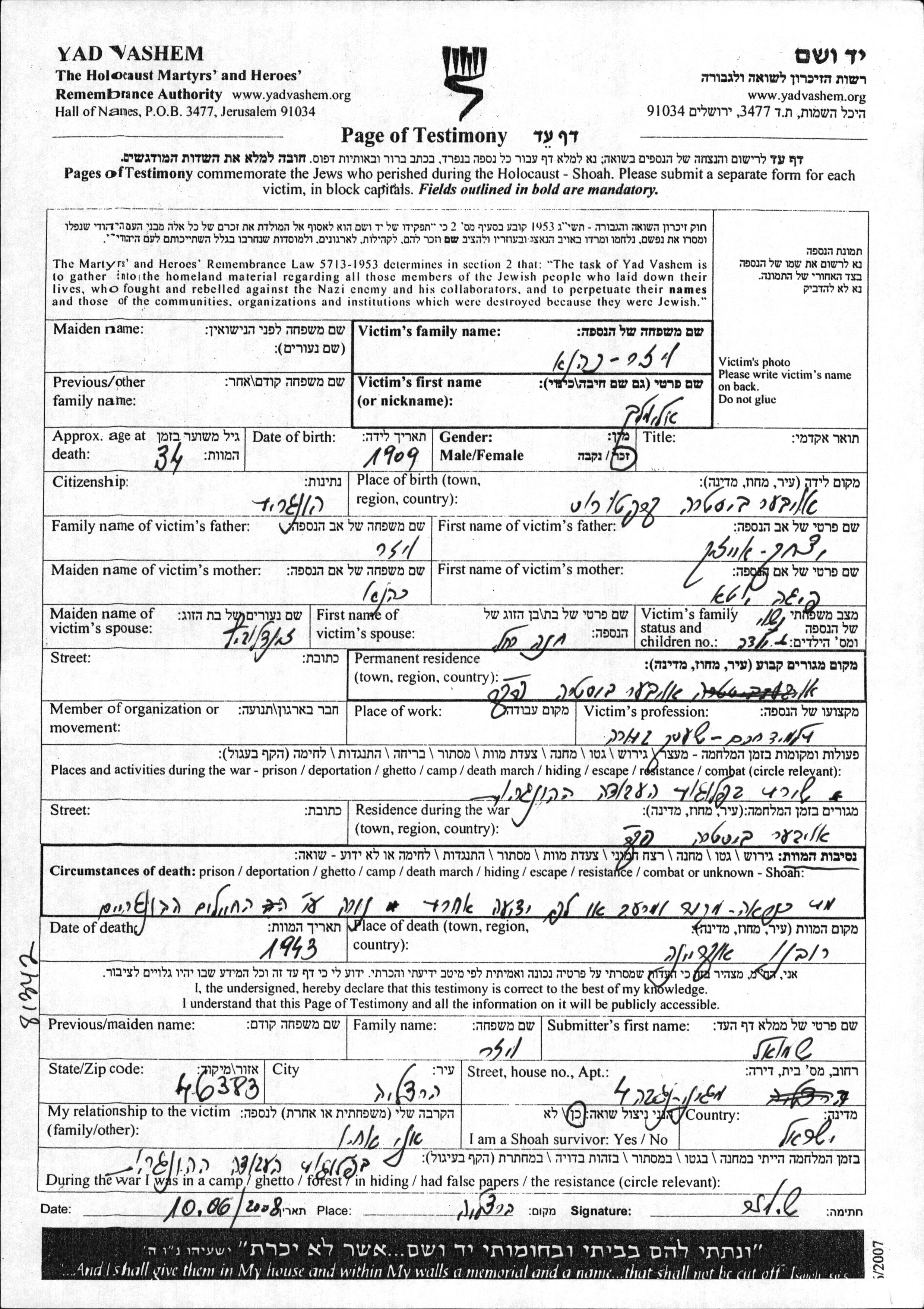 Elimelekh wurde in der Schoah ermordet. Todesort: Rowno, Polen im Jahr 1943.