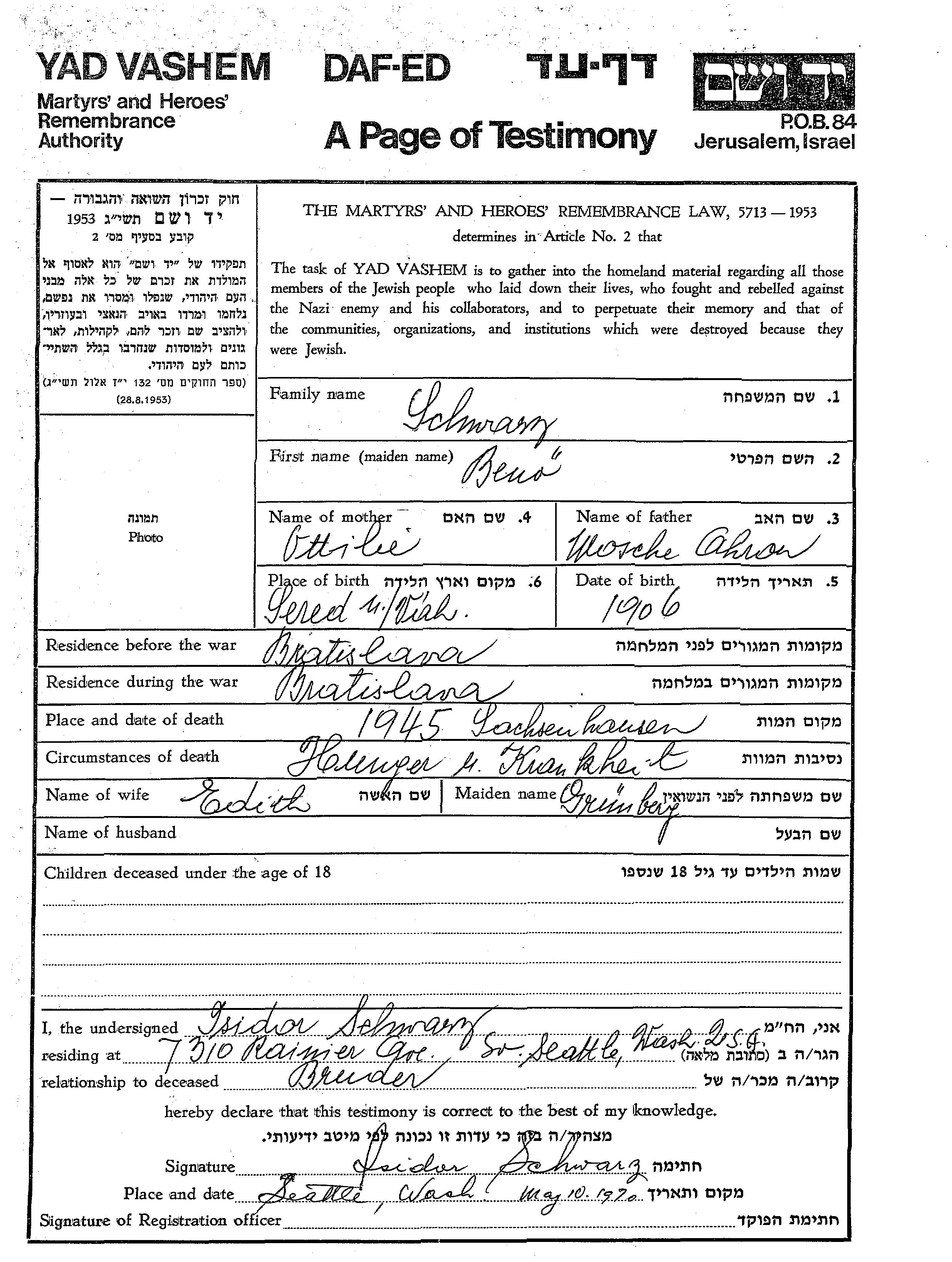 Schwarz Beno 1906 Bratislava, Tschechoslowakei Gedenkblatt