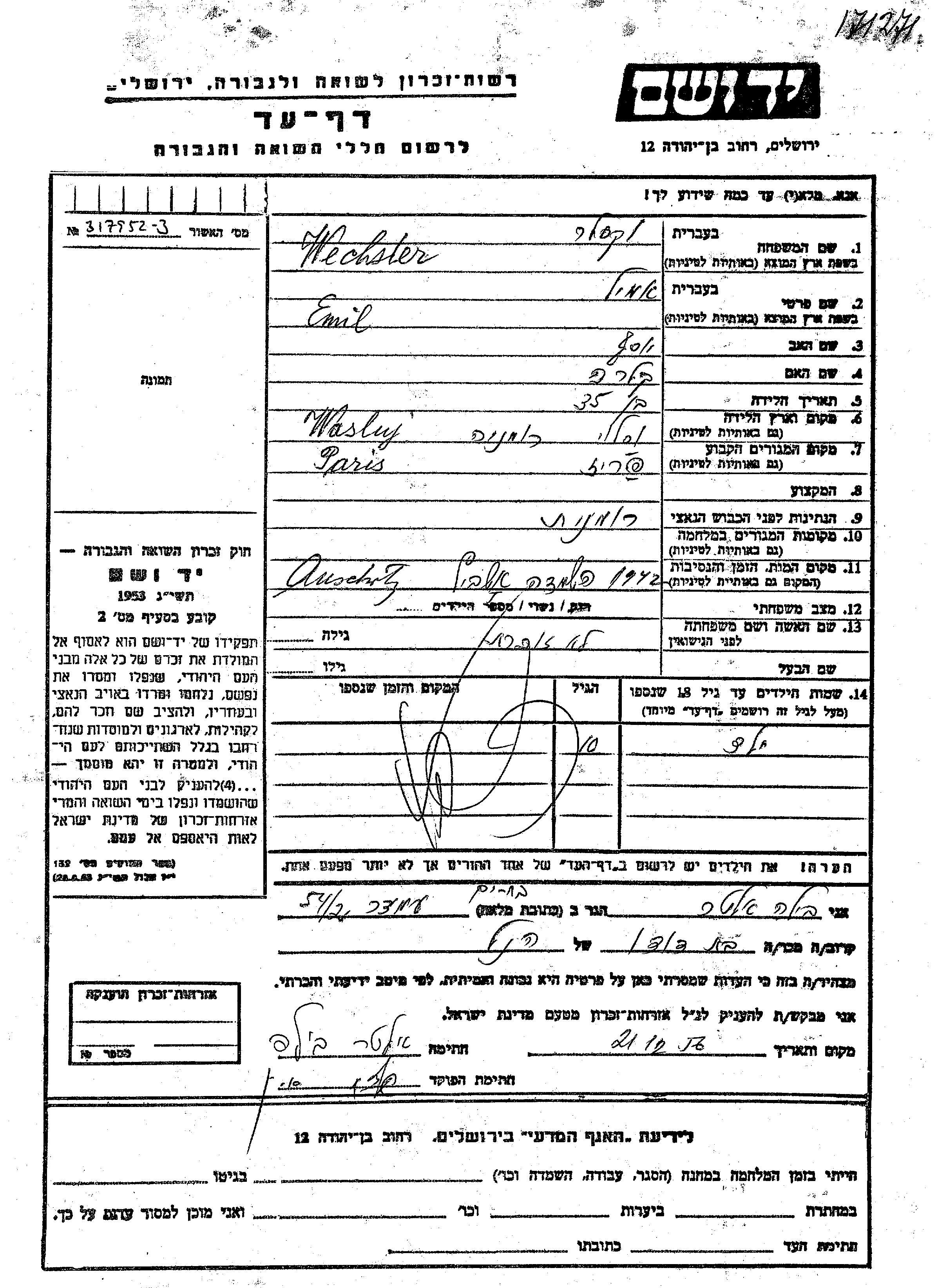 Emil wurde in der Schoah ermordet. Todesort: Auschwitz, Polen im Jahr 1942.